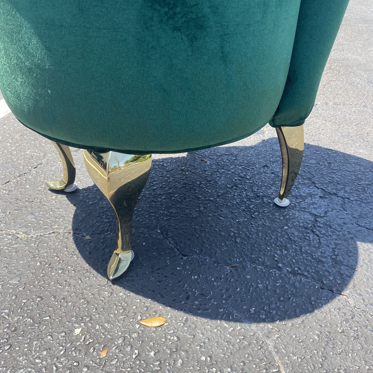 Mid Century Green Velvet Upholstered Slipper Chair with Chrome Feet. Measures 30" x 18". Condition: Some spotting to the upholstery on the backrest otherwise good condition. Estimate: $100.00 - $300.00 Domestic Shipping: Third party