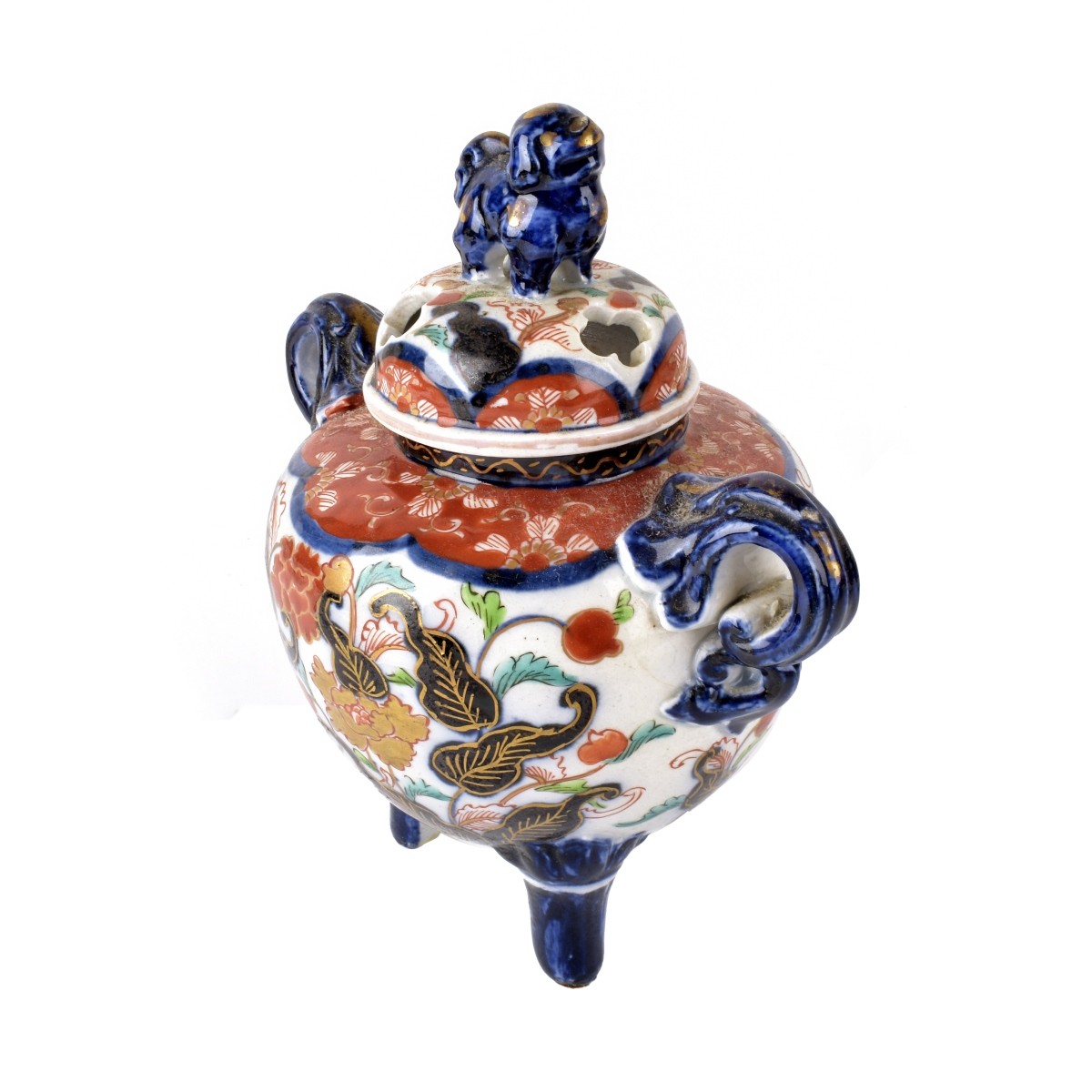 Grouping of Three (3) Vintage Japanese Imari Porcelain Tableware To Include a Covered Incense Burner, Bowl, and a Charger. Burner measures 7-3/4" x 6-1/2' x 4-1/2". Charger measures 12" dia. Bowl measures 3-1/2" x 8". Condition: Charger possibly has a repair to the rim otherwise good condition. Estimate: $100.00 - $150.00 Domestic Shipping: $88.00