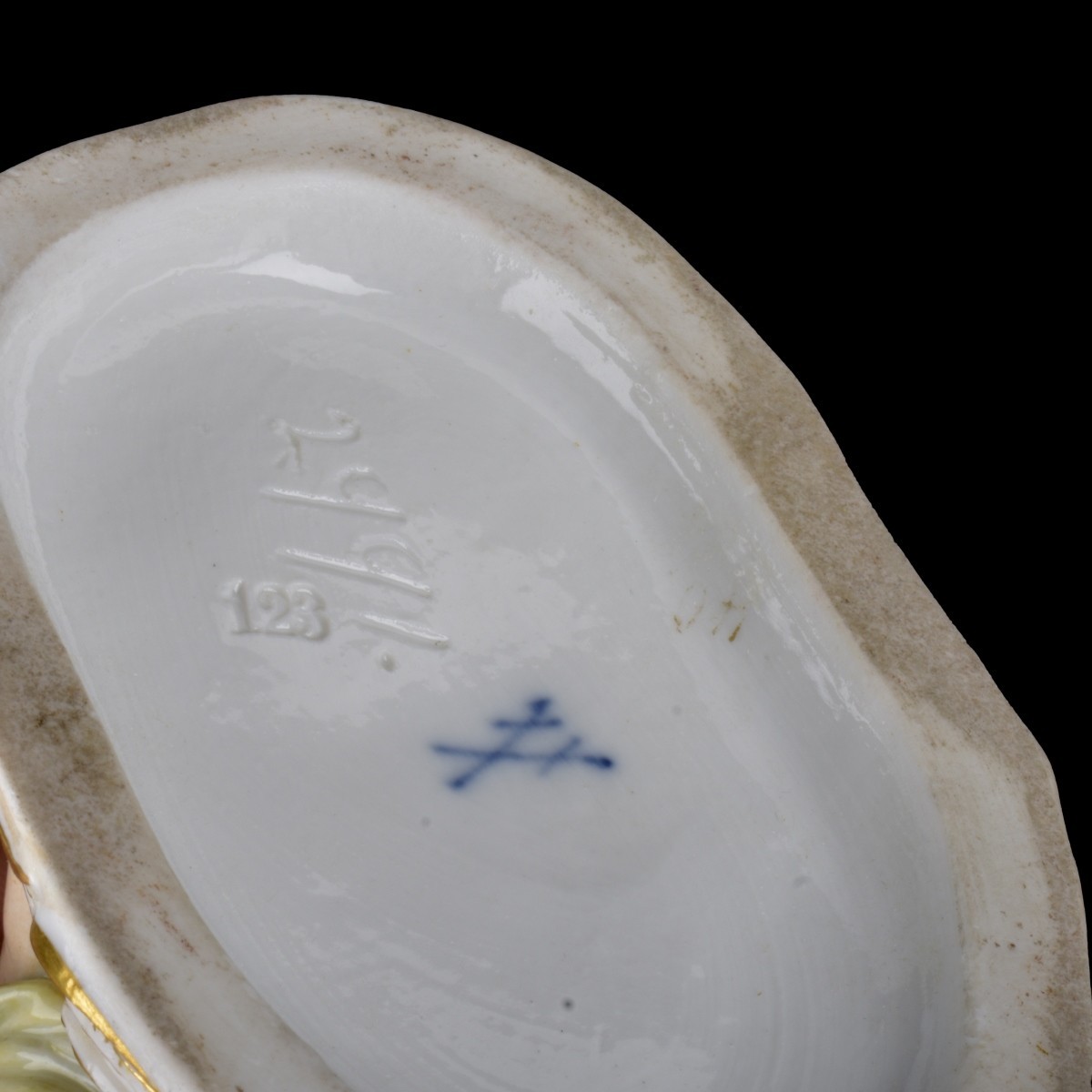 19th Century Meissen Porcelain Putti Couple. Signed to the base. Measures 4-3/4” x 3-3/4”. Condition: Good antique condition, typical chips and small losses. Estimate: $400.00 - $800.00 Domestic Shipping: $40.00