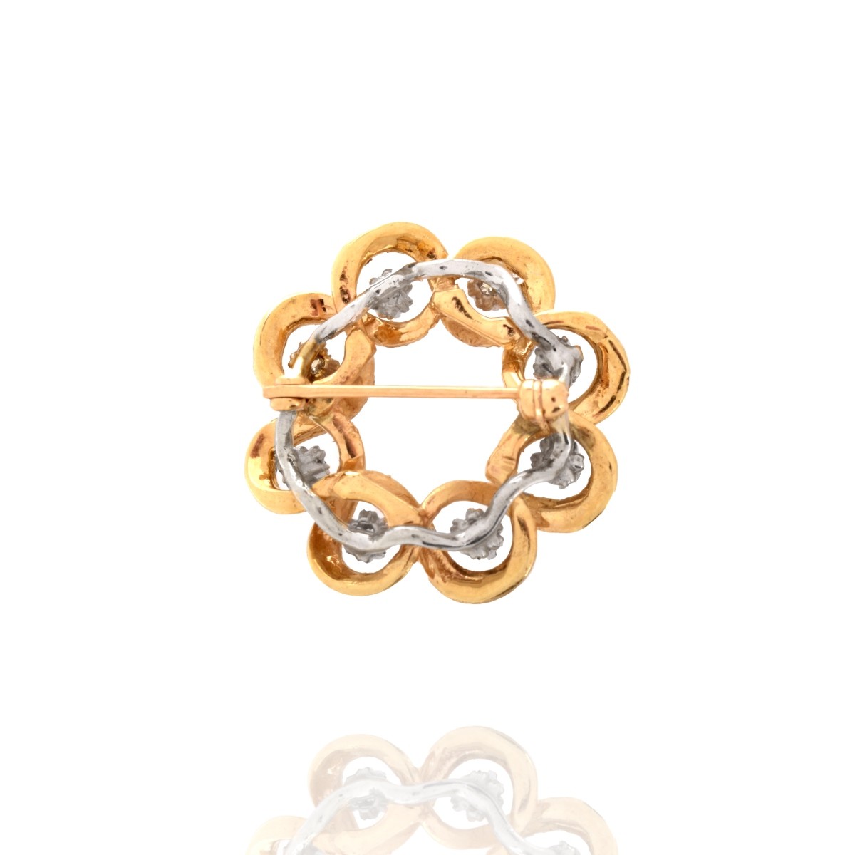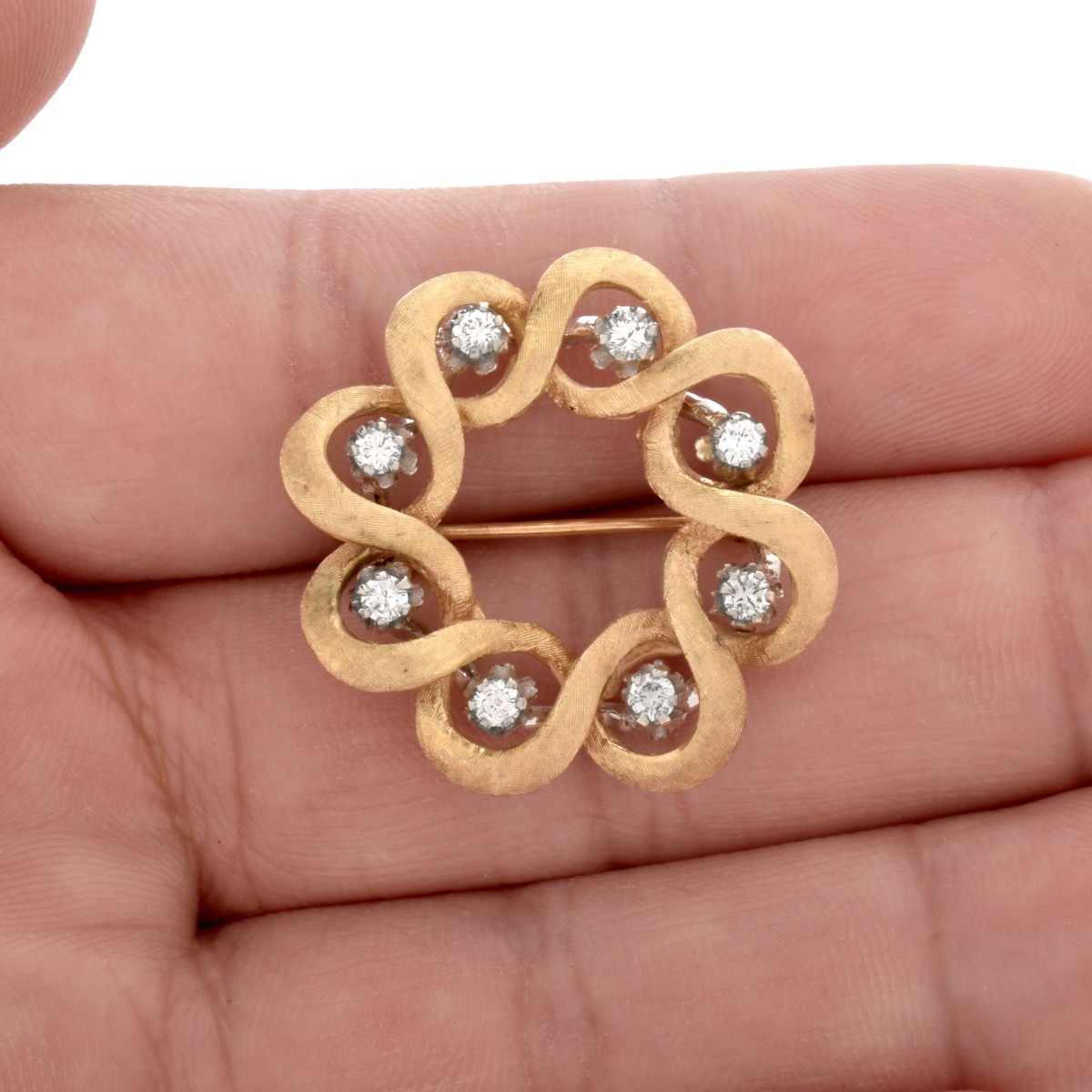 Vintage Approx. .40 Carat TW Eight Round Brilliant Cut Diamond and 14 Karat Yellow and White Gold Brooch. Diamonds G-H color, VS1-VS2 clarity. Measures 1-1/8" diam. Approx. weight: 7.95 grams. Condition: Very good vintage condition. Estimate: $400.00 - $600.00 Domestic Shipping: $30.00