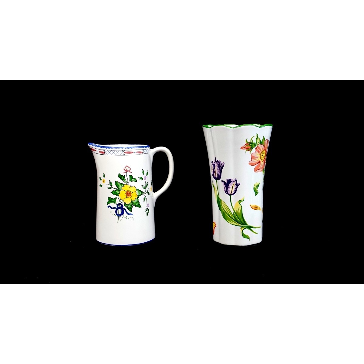 Item Condition: Tallest vase has a chip to the base, one pitcher has a repair to the handle and a few hairline cracks otherwise good condition.