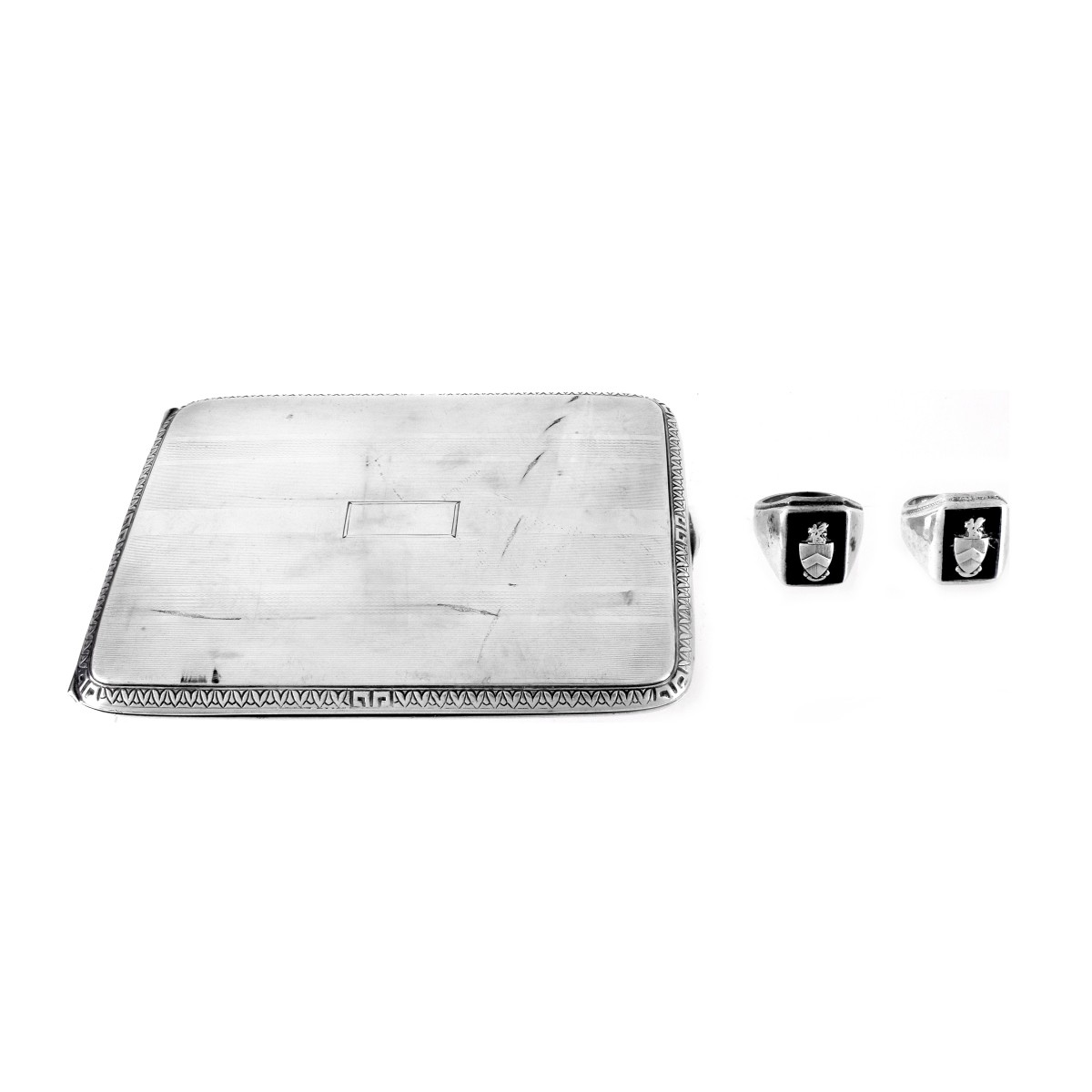 Sterling Cigarette Case and Two Rings