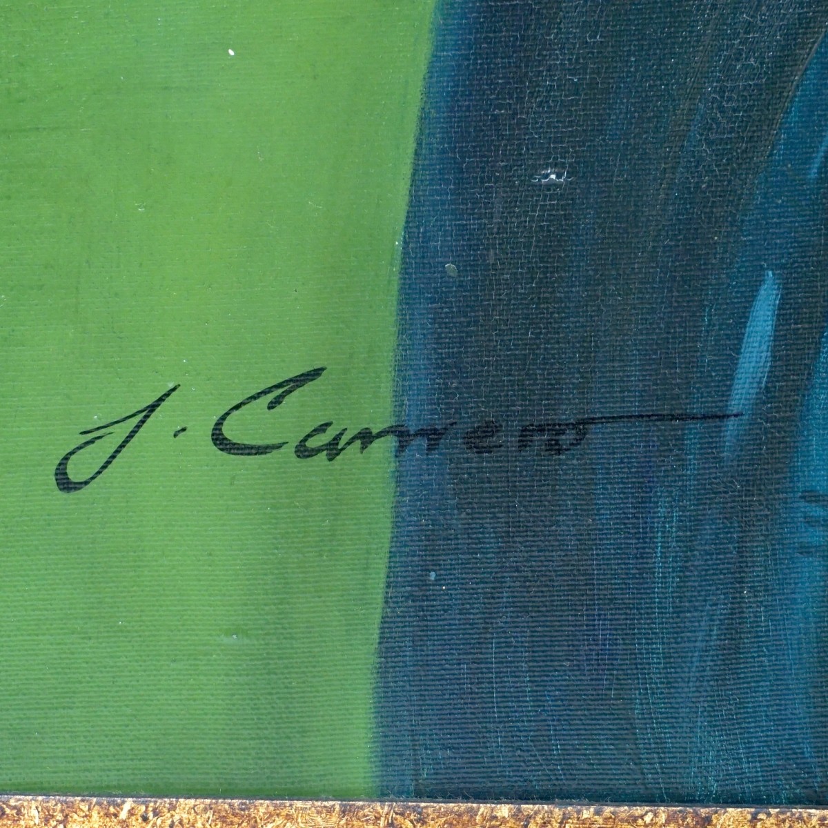 J. Camero (20th Century) Oil on Canvas "Botero Style Portrait" Signed Lower Left. Measures 36" x 24". Frame measures 47" x 35". Condition: Good condition. Estimate: $100.00 - $300.00 Domestic Shipping: Third party