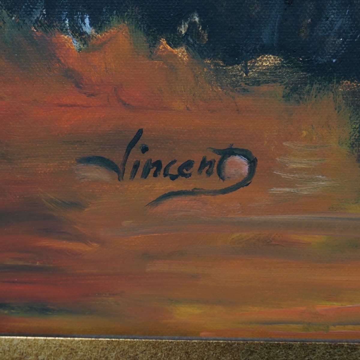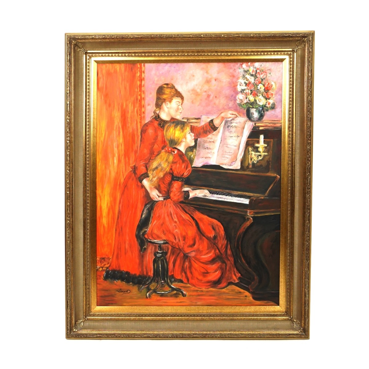 Vincent (20th Century) Oil on Canvas "Piano Lesson" Signed Lower Left. Measures 40" x 30". Frame measures 49" x 39" x 2-1/2". Condition: Good condition. Estimate: $100.00 - $300.00 Domestic Shipping: Third party