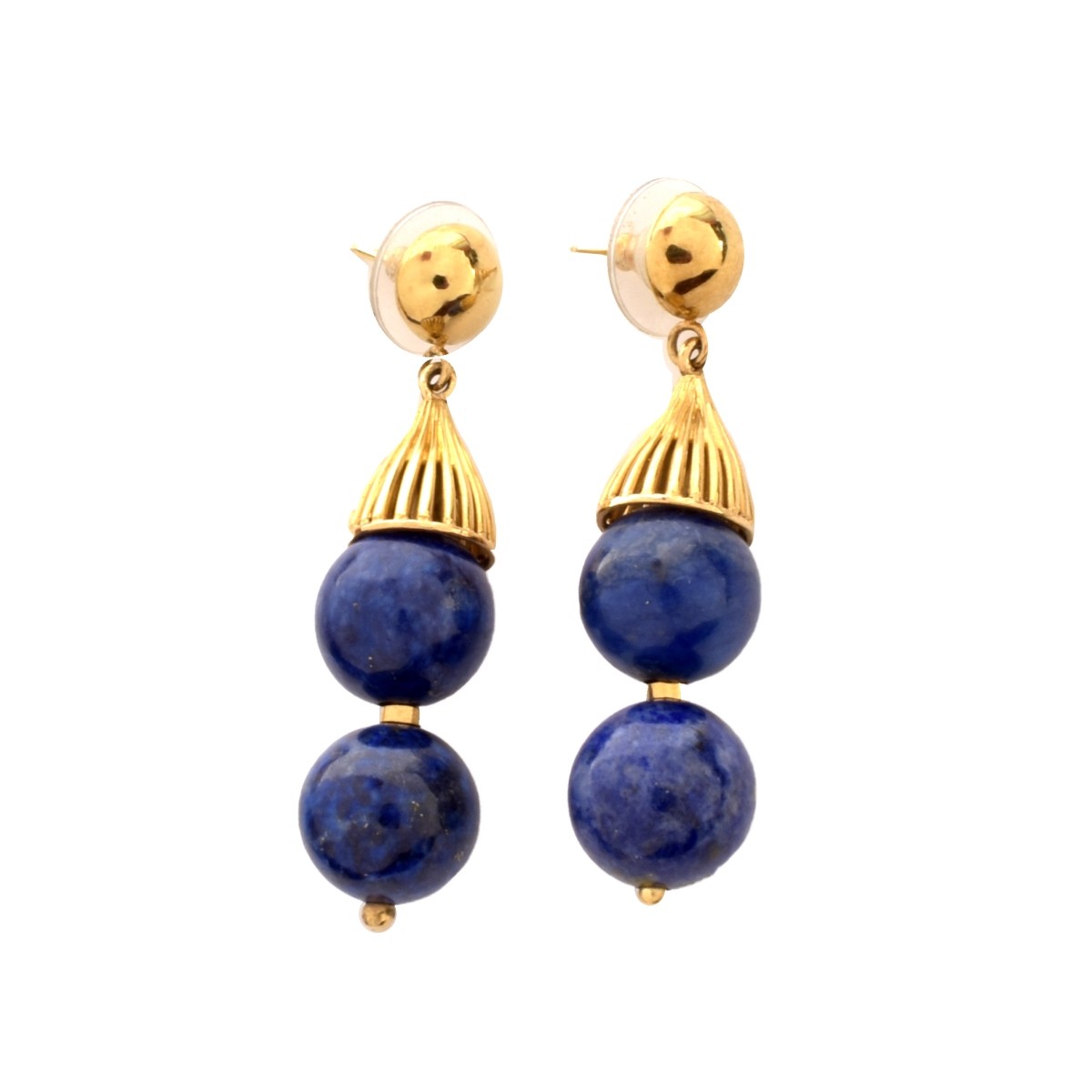 Vintage Circa 1960s Fred Paris Lapis Lazuli Bead, Angelskin Coral Bead and 18 Karat Yellow Gold Necklace and Earrings. The necklace was originally made as a 36-1/2" long necklace and was later converted to two shorter necklaces measuring 19" L and 17-1/2" L. Earrings measure 2" L. Lapis beads measure 13mm. Stamped Fred Paris to original necklace clasp. Approx. total weight: 222.07 grams. Original Fred Rue Royale Paris pouch to accompany this Lot. Condition: Very good vintage condition. For additional information and/or WhatsApp video please contact our resident GIA Graduate Gemologist, Russ Kodner at 954.650.5030 Estimate: $3000.00 - $5000.00 Domestic Shipping: $36.00