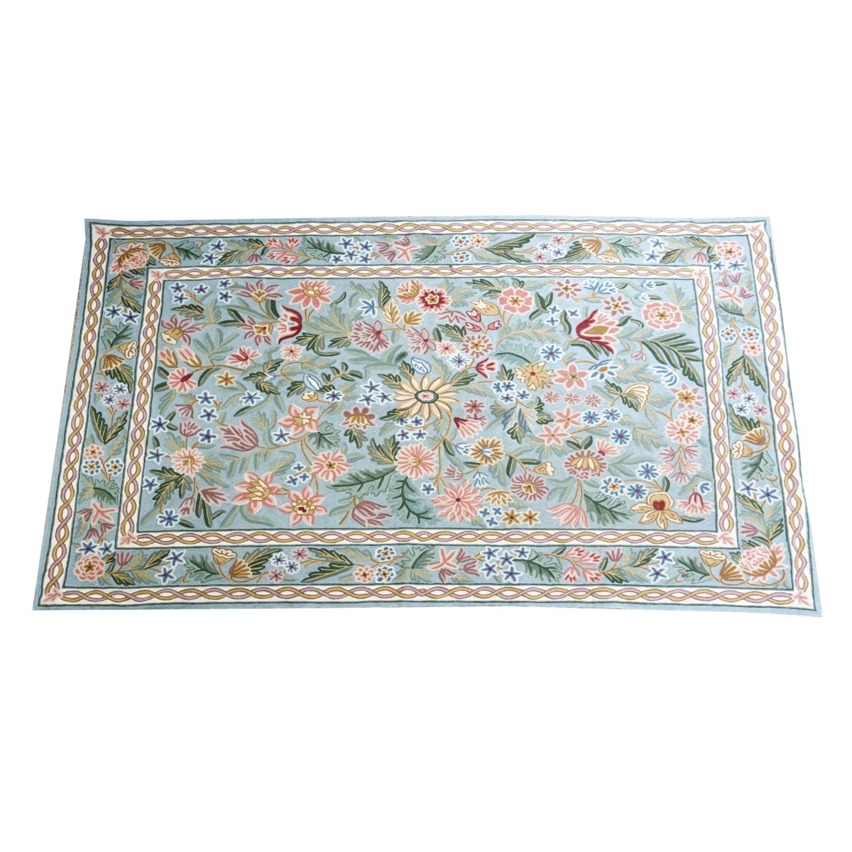 20th Century French Aubusson Style carpet. Continuous floral pattern on blue ground with intricate patterns. Measures 72" x 48-1/2". Condition: Needs cleaning otherwise good condition. Estimate: $100.00 - $300.00 Domestic Shipping: $88.00