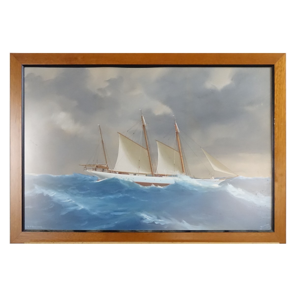 Antonio De Simone, Italian (1851 - 1907) Gouache on Paper "R.Y.S Fantome" Signed and Dated Lower Right. Measures 17-3/8" x 26-3/8", frame measures 20-3/8" x 29-3/8". Condition: Good condition. Estimate: $800.00 - $1600.00 Domestic Shipping: $225.00