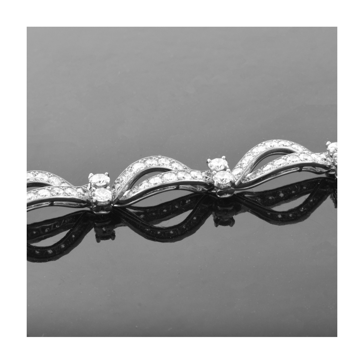 Vintage Cartier approx. 8.0 Carat TW Round Brilliant Cut Diamond and Platinum Bracelet. Signed. Diamonds E-F-G color, VS1-VS2 clarity. Measures 7-1/8" L, 1/4" W. Approx. weight: 23.15 grams. With vintage Cartier box. Condition: Very good vintage condition. For additional information and/or WhatsApp video please contact our resident GIA Graduate Gemologist, Russ Kodner at 954.650.5030 Estimate: $14,000.00 - $18,000.00 Domestic Shipping: $38.00