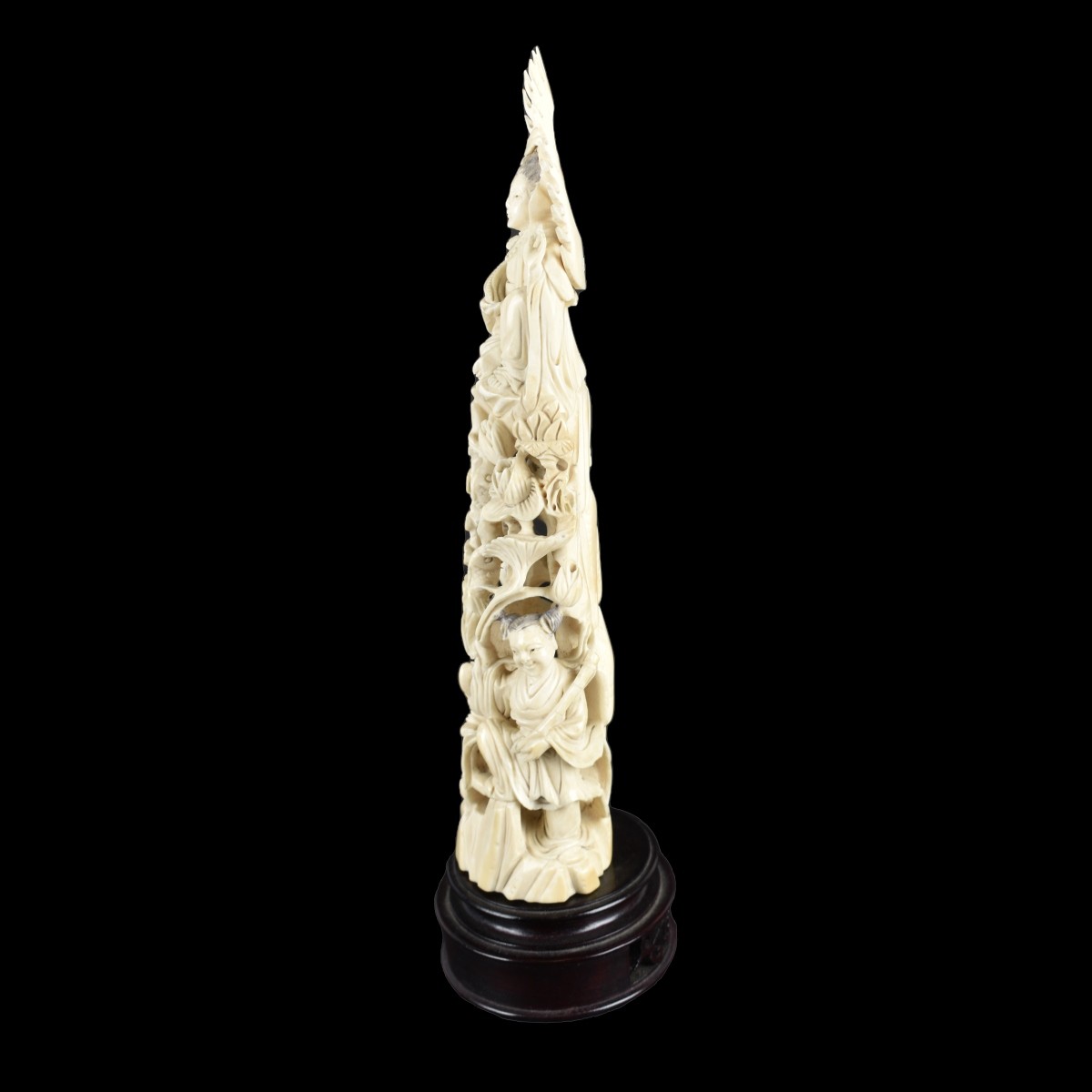Finely Carved Chinese Polychrome Guanyin and Graces Figurine Presented on a Wooden Base. Figurine measures 9-3/4" x 2-1/2". Overall height 11-1/2" H. We Will Not Ship This Item Out of State of Florida. Anyone Having This Item Shipped Must Have a Florida Address or the Item will not be Shipped. We will Not Knowingly Sell Endangered Species outside of Legal Channels. Estimate: $600.00 - $800.00 Domestic Shipping: $78.00 Condition: Good condition.