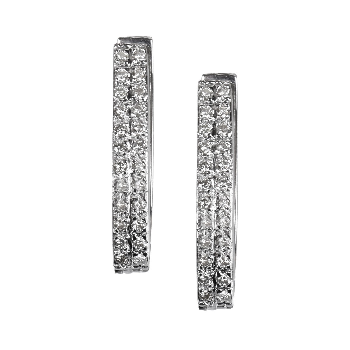 Vintage Italian Approx. 2.0 Carat TW Round Brilliant Cut Diamond and 14 Karat White Gold Huggie Hoop Earrings. Diamonds E-F color, VS1-VS2 clarity. Stamped 14K, Italy. Measure 1-1/4" L, 3/16" W. Approx. total weight: 6.4 dwt. Estimate: $1000.00 - $1500.00 Domestic Shipping: $40.00 Condition: Very good condition. For additional information and/or WhatsApp video please contact our resident GIA Graduate Gemologist, Russ Kodner at 954.650.5030