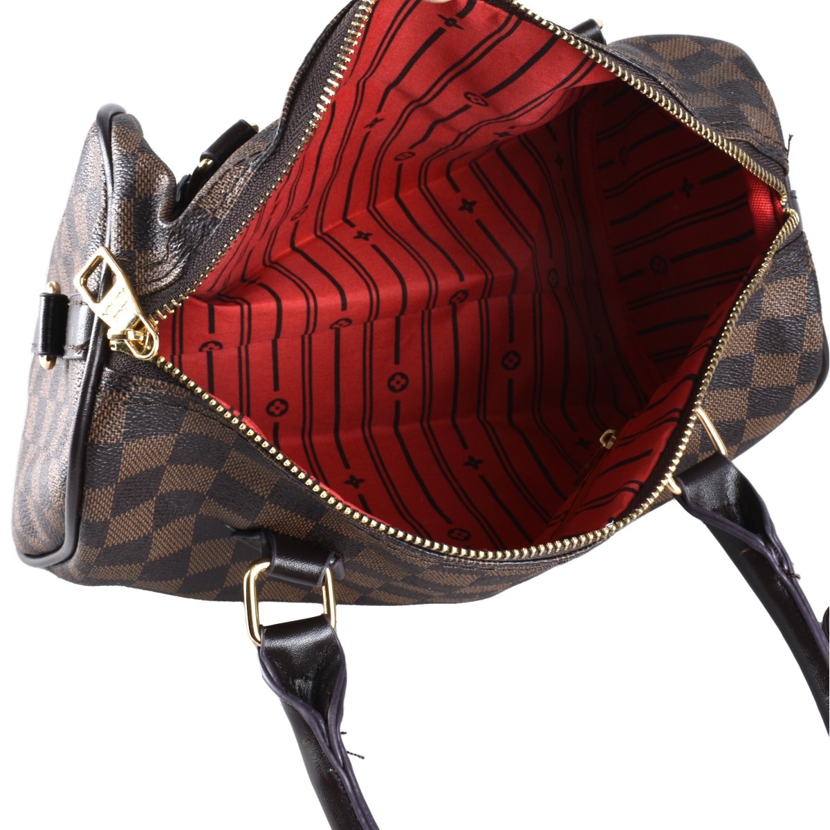 Replica Louis Vuitton Speedy Damier Hand Bag. Gold Tone Hardware. Marked on the interior and labeled on the hardware. Measures 7-3/4" x 12" x 7". Estimate: $50.00 - $150.00 Domestic Shipping: $55.00 Condition: Good condition.