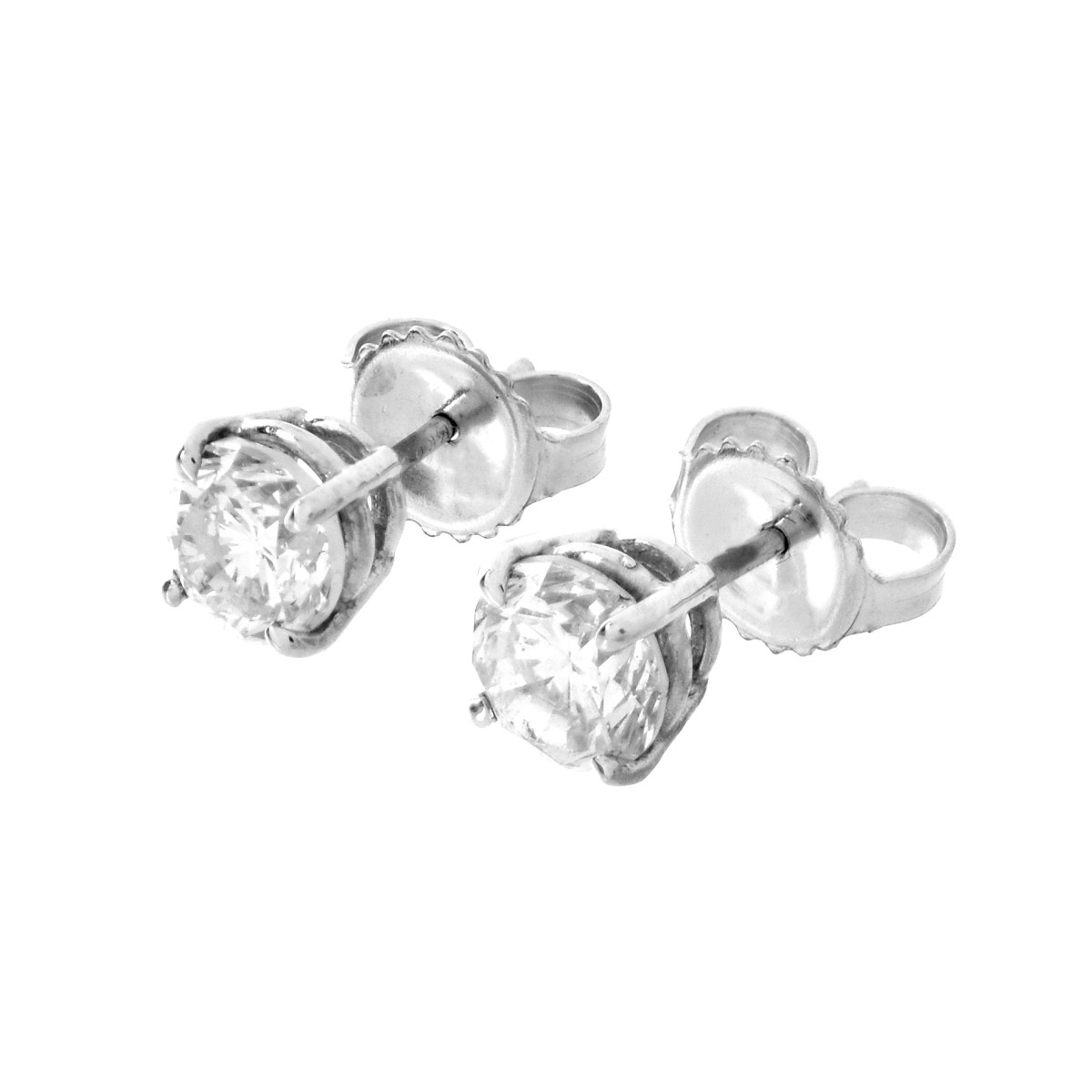 Approx. 1.63 Carat TW (.86ct and .77ct.) Round Brilliant Cut Diamond and 14 Karat White Gold Ear Studs. Diamonds F-G color, SI1 clarity. Stamped 14K. Approx. total weight: 1.58 grams. Estimate: $1500.00 - $2500.00 Domestic Shipping: $40.00 Condition: Very good condition. For additional information and/or WhatsApp video please contact our resident GIA Graduate Gemologist, Russ Kodner at 954.650.5030