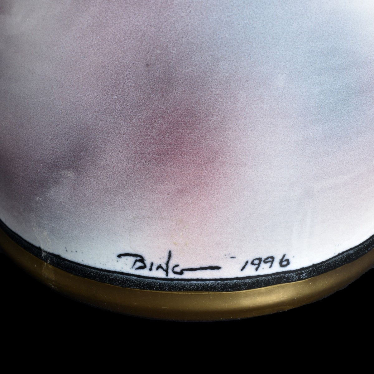 Bing Gleitsman "3 Faces" Glazed Porcelain Vase. Signed and dated 1996. Measures 11-1/4" x 4". Estimate: $100.00 - $300.00 Domestic Shipping: $72.00 Condition: Good condition.