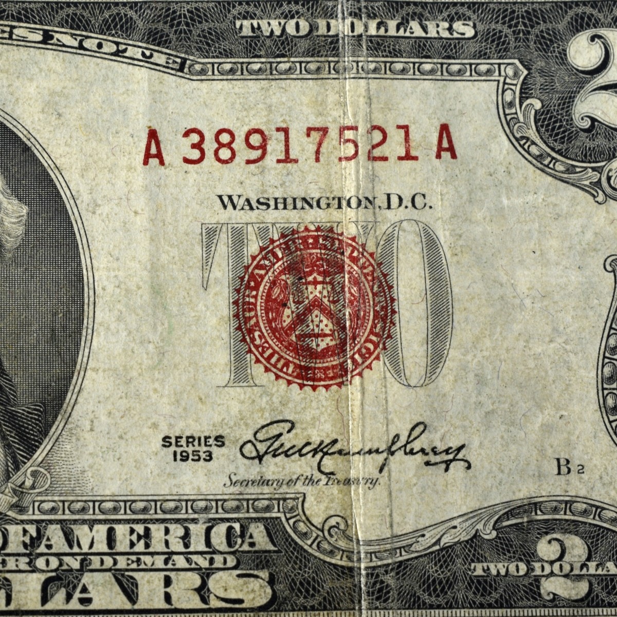 Item Condition: Red note has a crease to the center.