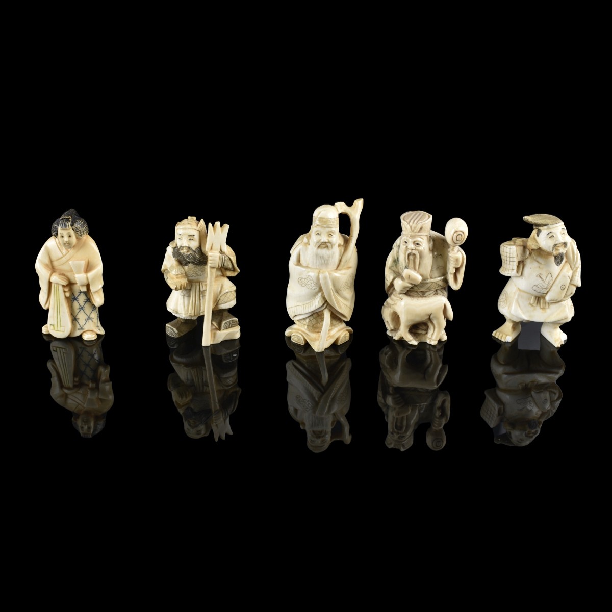 Five Antique Japanese FigurinesFive Antique Japanese FigurinesFive Antique Japanese FigurinesFive Antique Japanese Figurines