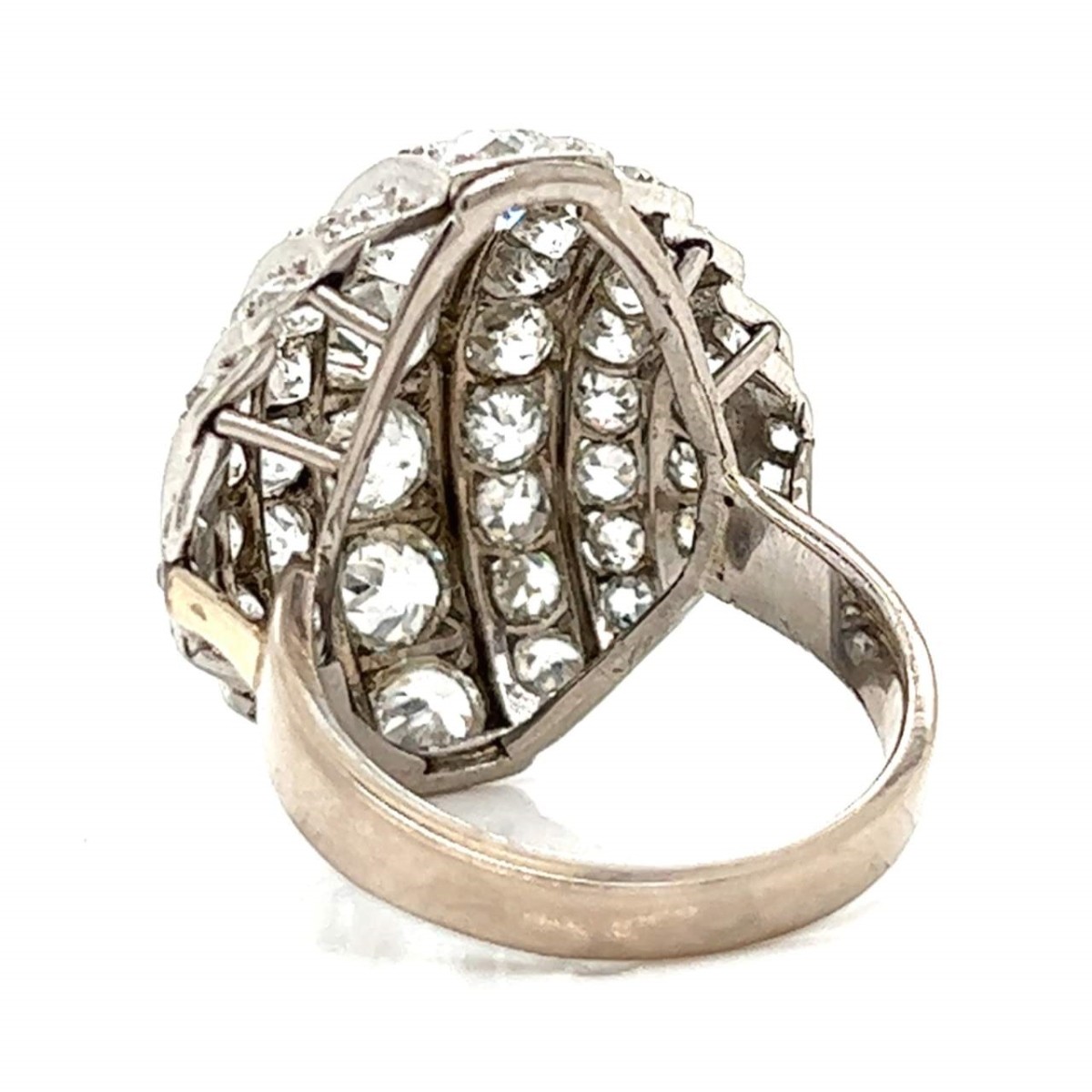 Vintage Circa 1950s Approx. 5.80 Carat TW Fifty-Five Old Mine Cut Diamond and 18 Karat White Gold Cocktail Ring. Diamonds G-I color, VS-SI1 clarity. Ring size 6-1/2. Approx. weight: 8.9 grams. Estimate: $7000.00 - $10,000.00 Domestic Shipping: $40.00 Condition: Very good condition. For additional information and/or WhatsApp video please contact our resident GIA Graduate Gemologist, Russ Kodner at 954.650.5030
