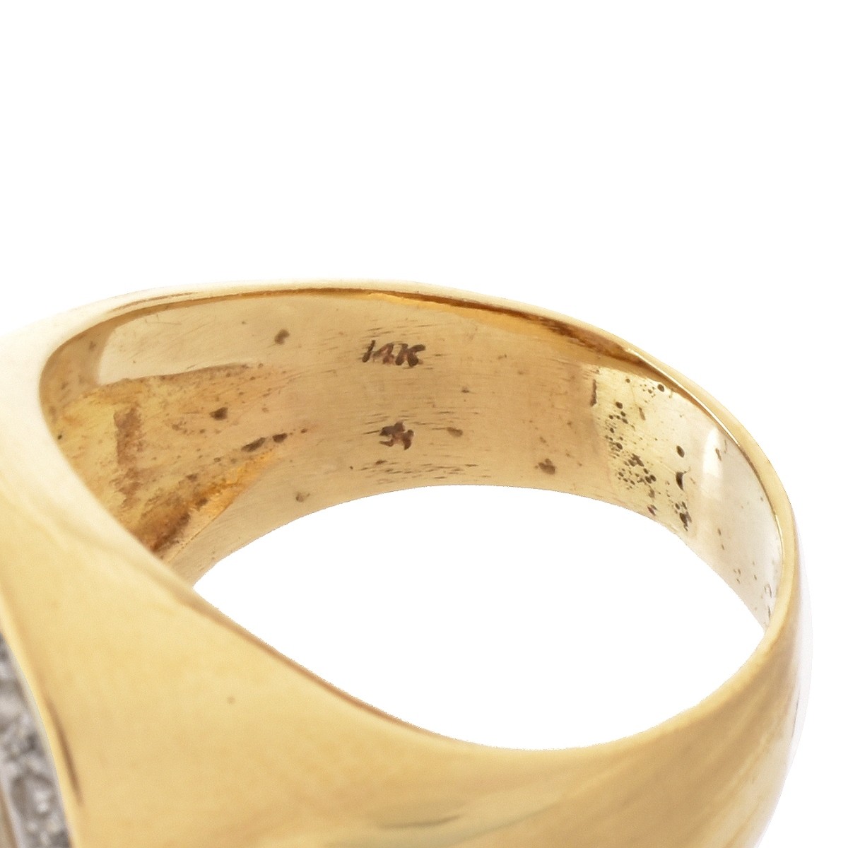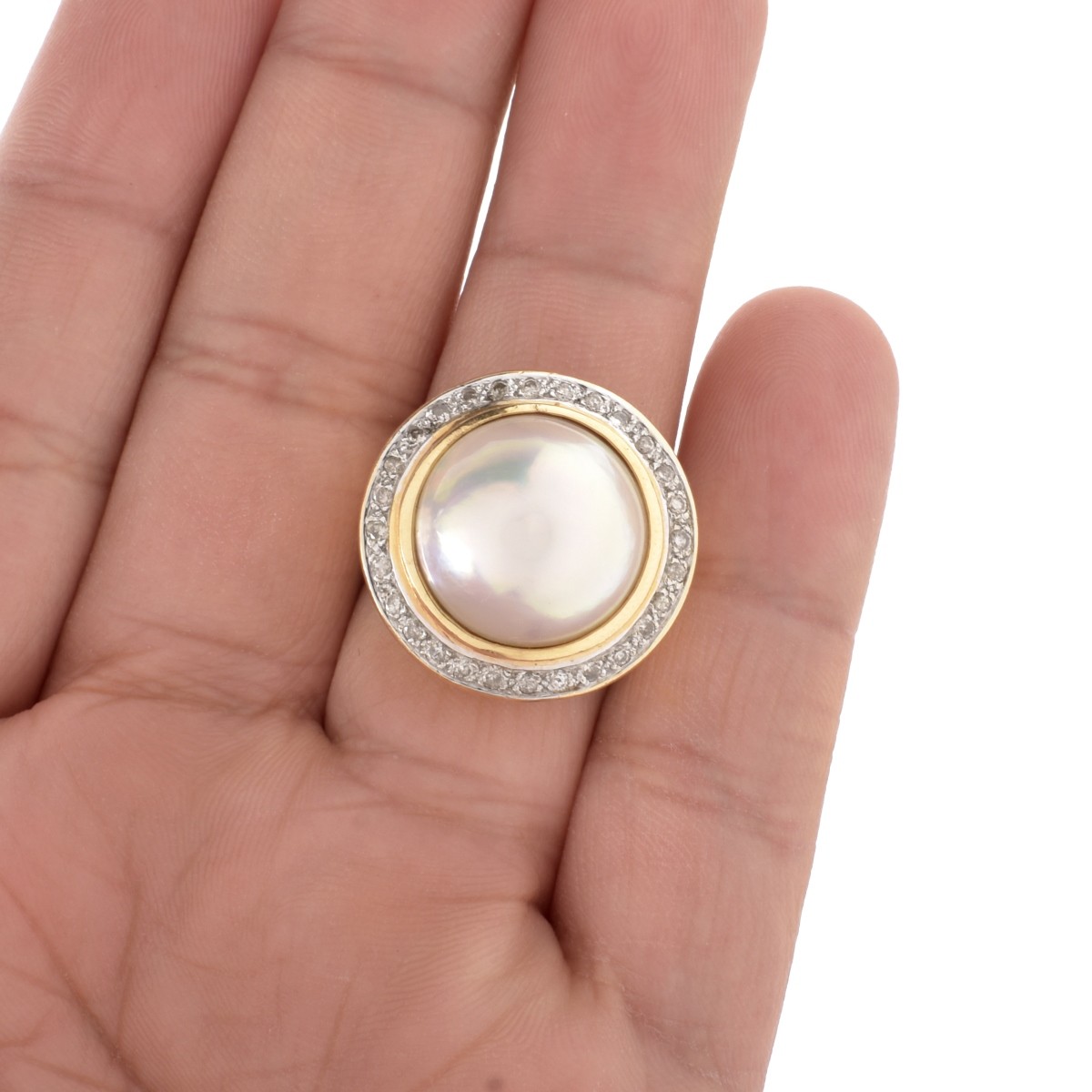 Mabe Pearl, Approx. 1.0 Carat TW Round Brilliant Cut Diamond and 14 Karat Yellow Gold Ring. Pearl with very good luster and polish, measures 15mm. Diamonds G-H color, VS1-VS2 clarity. Stamped 14K. Ring size 8. Approx. weight: 13.43 grams. Estimate: $400.00 - $800.00 Domestic Shipping: $34.00 Condition: Very good vintage condition. For additional information and/or WhatsApp video please contact our resident GIA Graduate Gemologist, Russ Kodner at 954.650.5030