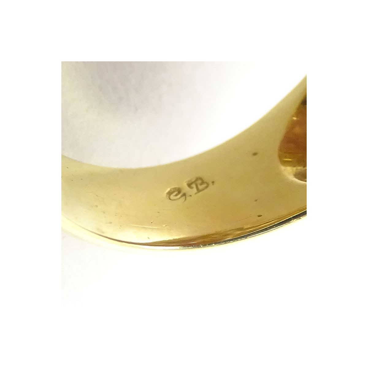 Lady's Approx. 30.0 Carat Gem Quality Cushion Cut Kunzite, 2.50 Carat Round Cut Diamond and 18 Karat Yellow Gold Ring. Diamonds G-H Color, VS clarity. Signed 18K. Very good condition. Ring size 6-1/2. Approx. weight: 25.2 grams. Estimate: $3000.00 - $4000.00 Domestic Shipping: $40.00 Condition: Very good condition.