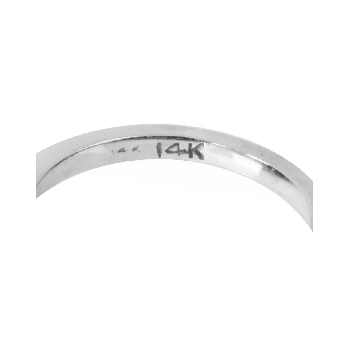 Vintage Approx. 3.0 Carat Pear Shape Cubic Zirconia and 14 Karat White Gold Engagement Ring. Stamped 14K. Ring size 5-1/2. Approx. weight: 4.82 grams. Estimate: $100.00 - $200.00 Domestic Shipping: $40.00 Condition: Good vintage condition. Needs cleaning.