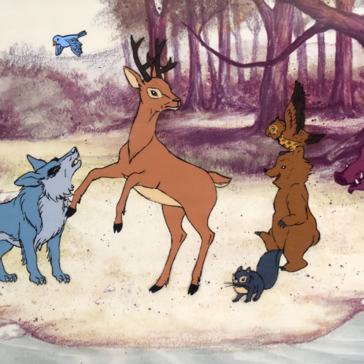 Grouping of Two Hand Painted Production Animation Cels to Include "Soglows Little King" and "Gnomes". Documents attached en verso. Largest measures 14-1/8" x 16". Remaining frame measures11-1/4" x 14-1/4". Estimate: $50.00 - $100.00 Domestic Shipping: $115.00 Condition: Good condition.