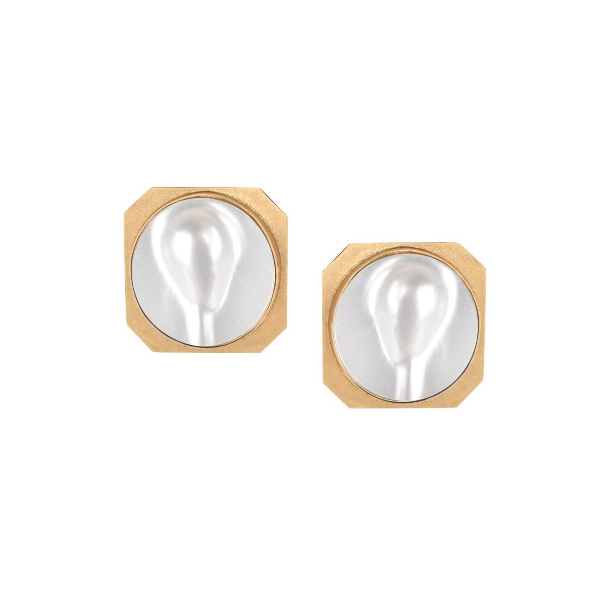 Large Mabe Pearl and 14 Karat Yellow Gold Earrings. Pearls with good luster and polish. Earrings measure 1-1/4" square. Approx. weight: 22.66 grams. Estimate: $600.00 - $800.00 Domestic Shipping: $40.00 Condition: Good vintage condition. Need cleaning. For additional information and/or WhatsApp video please contact our resident GIA Graduate Gemologist, Russ Kodner at 954.650.5030