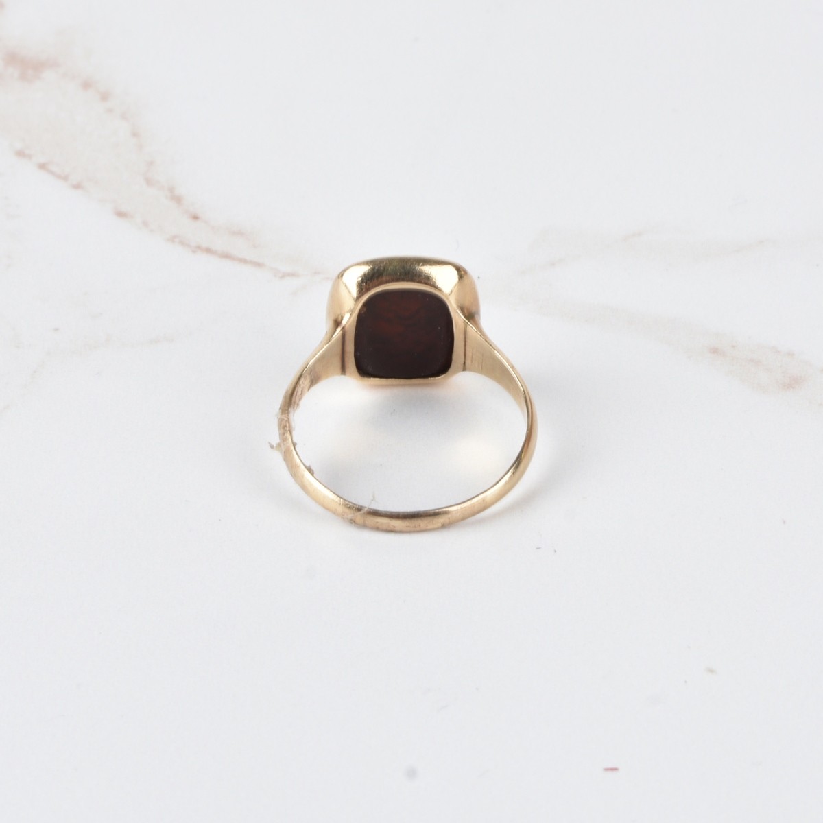 Antique 19th Century Carved Agate Young Beauty Intaglio and 10 Karat Yellow Gold Ring. Ring size 11. Approx. weight: 4.33 grams. Estimate: $200.00 - $300.00 Domestic Shipping: $40.00 Condition: Very good antique condition.