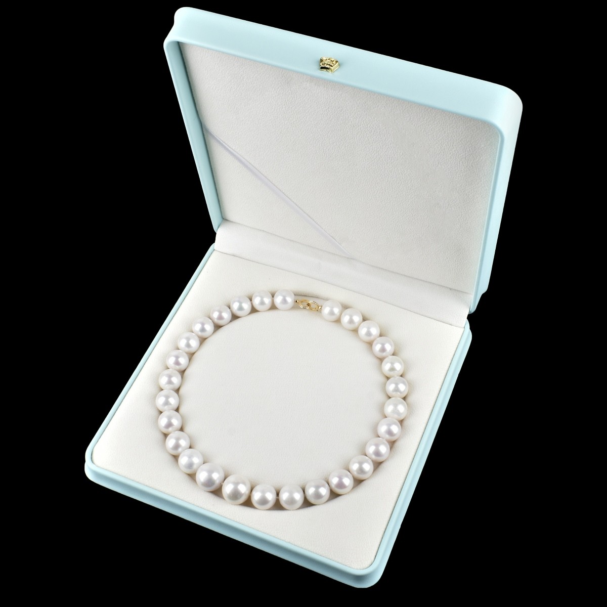 Single Strand 14-17mm South Sea Pearl Necklace with .36 Carat TW Diamond and 18 Karat Yellow Gold Clasp. Pearls with good luster and polish, minor natural blemishes. Measures 17" L. Approx. weight: 121.52 grams. Estimate: $6000.00 - $8000.00 Domestic Shipping: $40.00 Condition: Very good condition. For additional information and/or WhatsApp video please contact our resident GIA Graduate Gemologist, Russ Kodner at 954.650.5030
