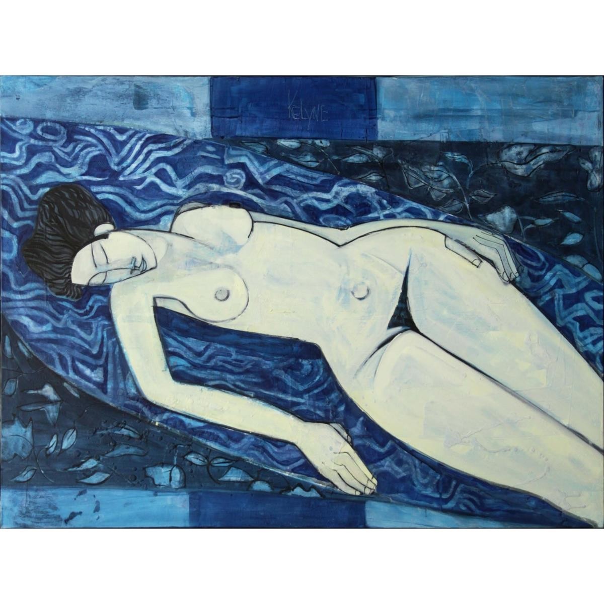 Kelyne, Vietnamese (born 1955) Oil on Canvas, "La toute puissance de la nuit". Signed. Titled en verso. Measures 51-1/4" H, 38" W; frame measures 61" H, 48" W. Shipping: Third party (estimate $2500-$4500... RESERVE $3000) Estimate: $1200.00 - $2400.00 Domestic Shipping: Third party Condition: Very good condition.