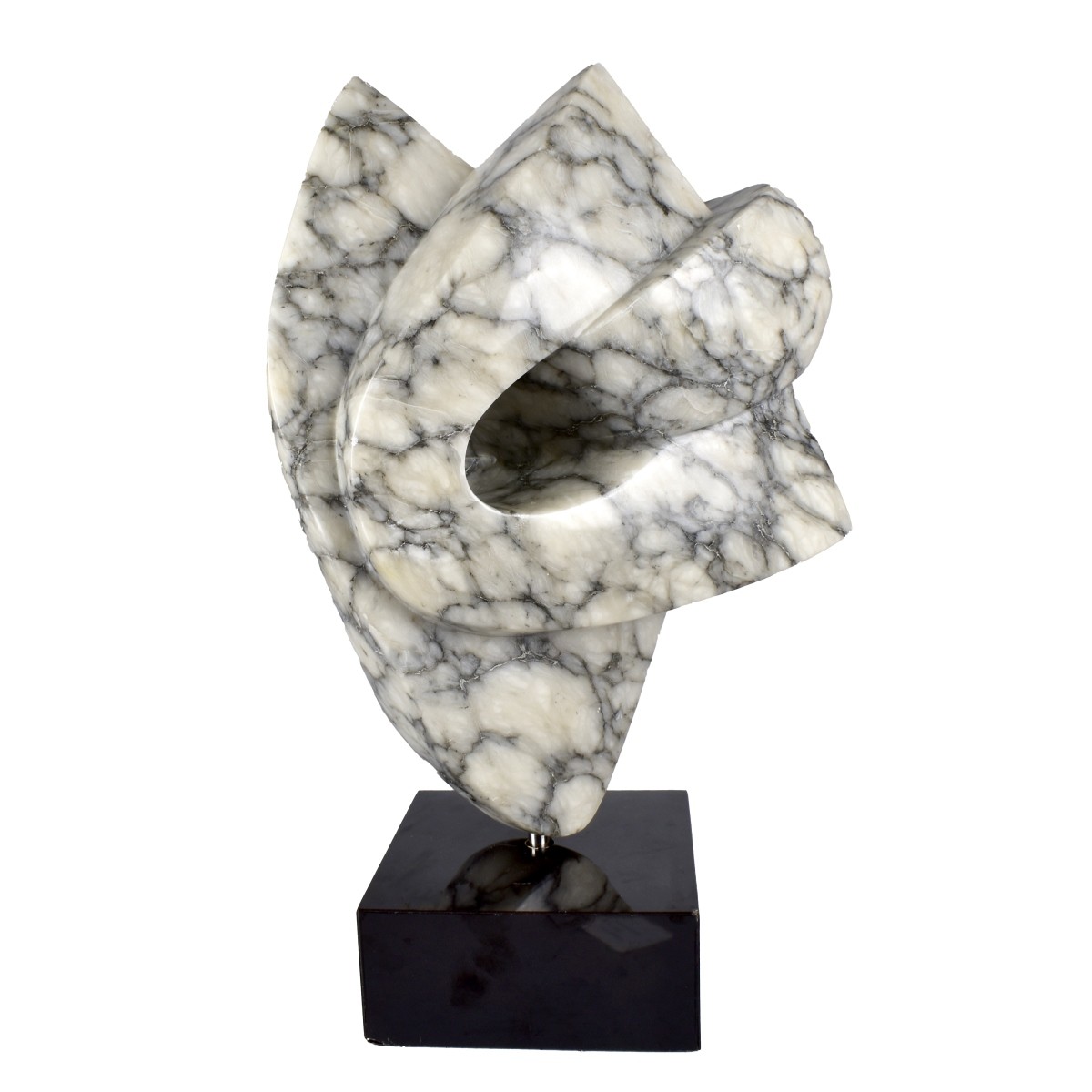 Sandy Frank, American (20th-21st cent.) Carved Marble Abstract Sculpture on Laminate Base. Unsigned. Sculpture measures 17-1/2" H, 13" W. Provenance: estate of the artist. Condition: Good condition. Small losses to laminate base. Estimate: $400.00 - $800.00 Domestic Shipping: Third party