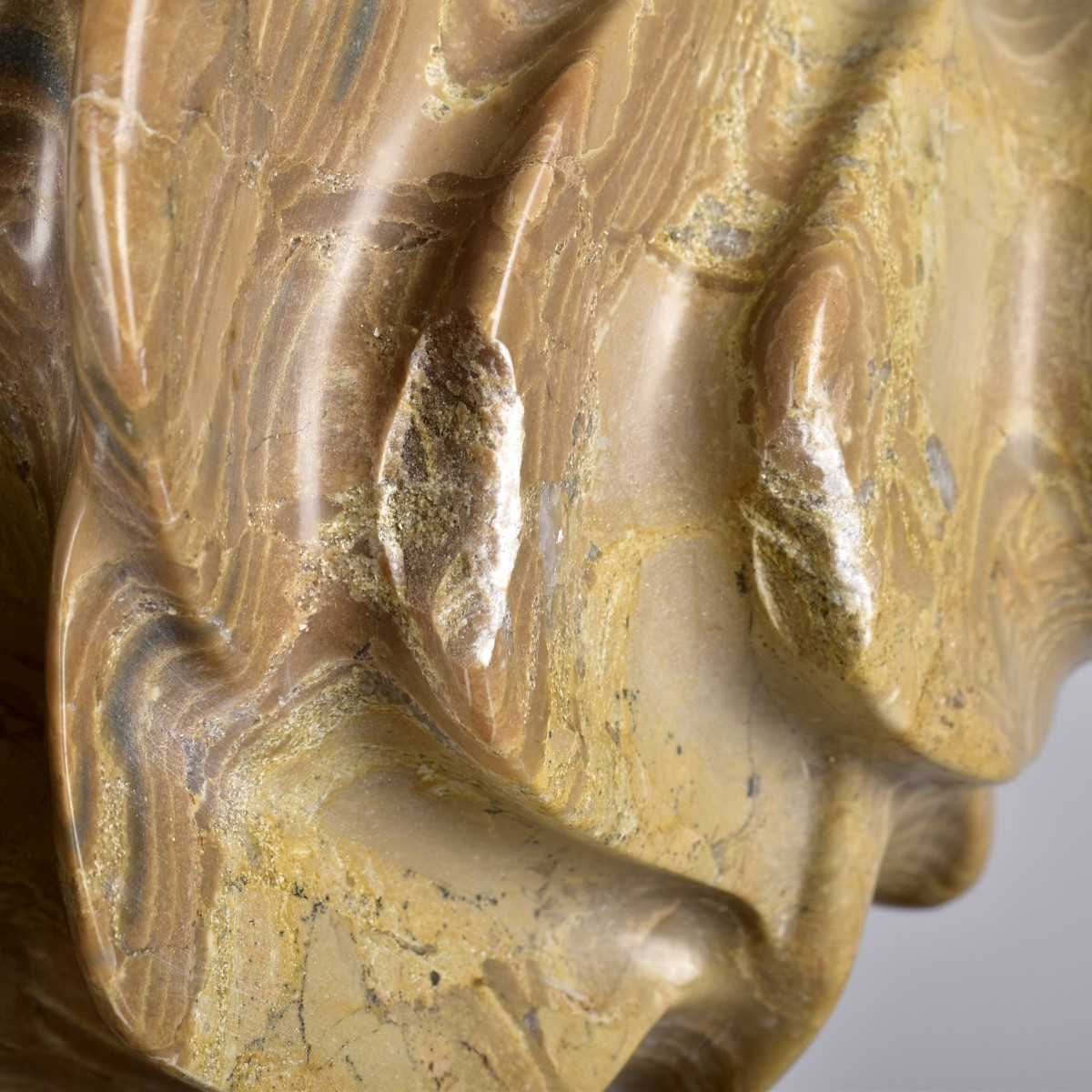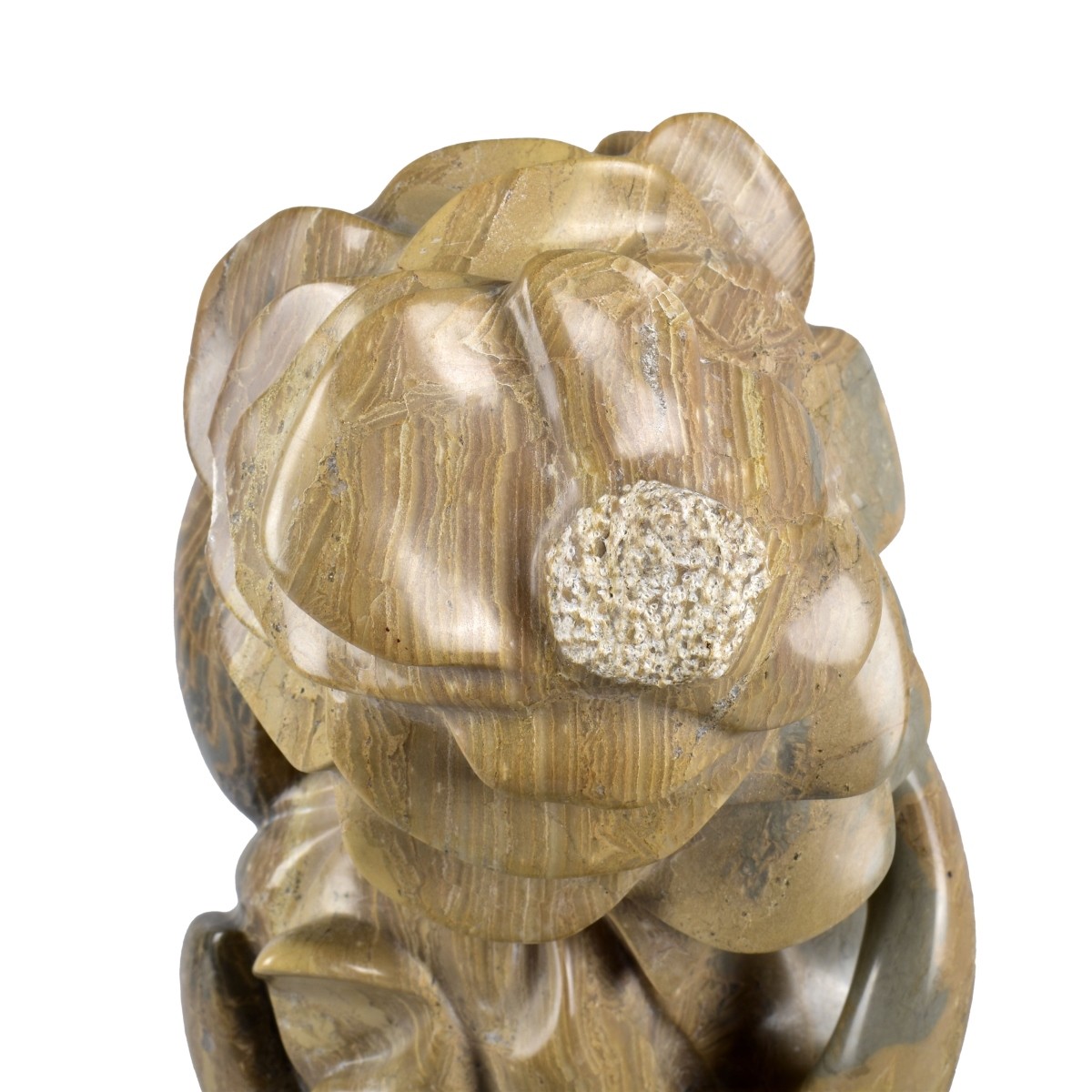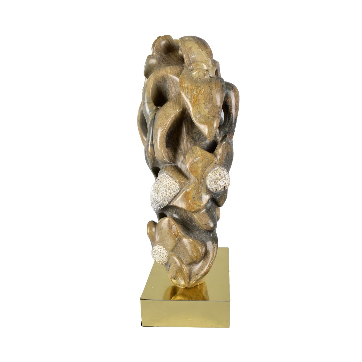 Sandy Frank, American (20th-21st cent.) Carved Stone Abstract Sculpture on Laminate Base. Unsigned. Sculpture measures 17" H, 11-1/2" W. Provenance: estate of the artist. Condition: Two small chips to stone otherwise good vintage condition. Estimate: $300.00 - $500.00 Domestic Shipping: Third party