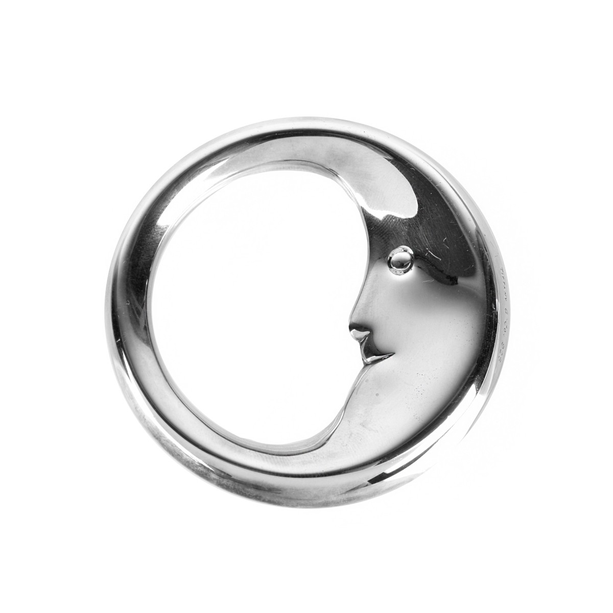 Vintage Tiffany & Co Sterling Silver Man in the Moon Baby Rattle. Signed, stamped 925. Measures 2-1/2" diam. Approx. gross weight: 32.63 grams. With Tiffany storage pouch. Condition: Small dent otherwise very good condition. Estimate: $50.00 - $100.00 Domestic Shipping: $40.00