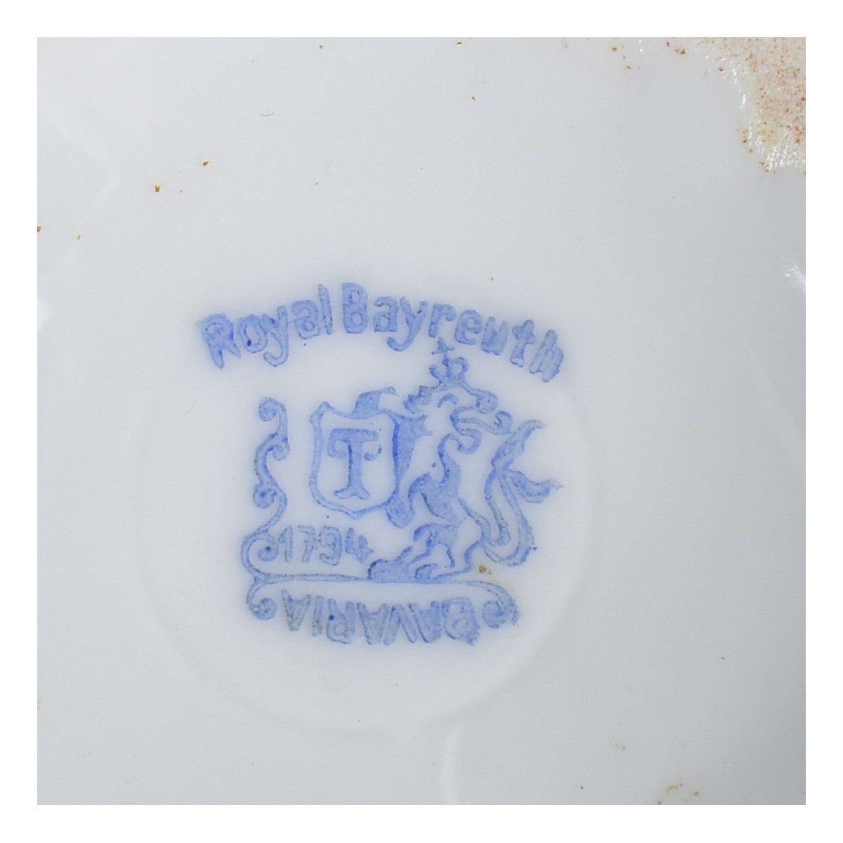 Antique Royal Bayruth Bavaria Porcelain 4-Piece Tea Set. Each is signed on the base. Lot includes: Tea pot, creamer, covered sugar, and covered box. Tea pot measures 4-3/8" x 7-1/4" x 3-7/8". Condition: Tea pot has a small chip to the spout. Estimate: $100.00 - $300.00 Domestic Shipping: $62.00