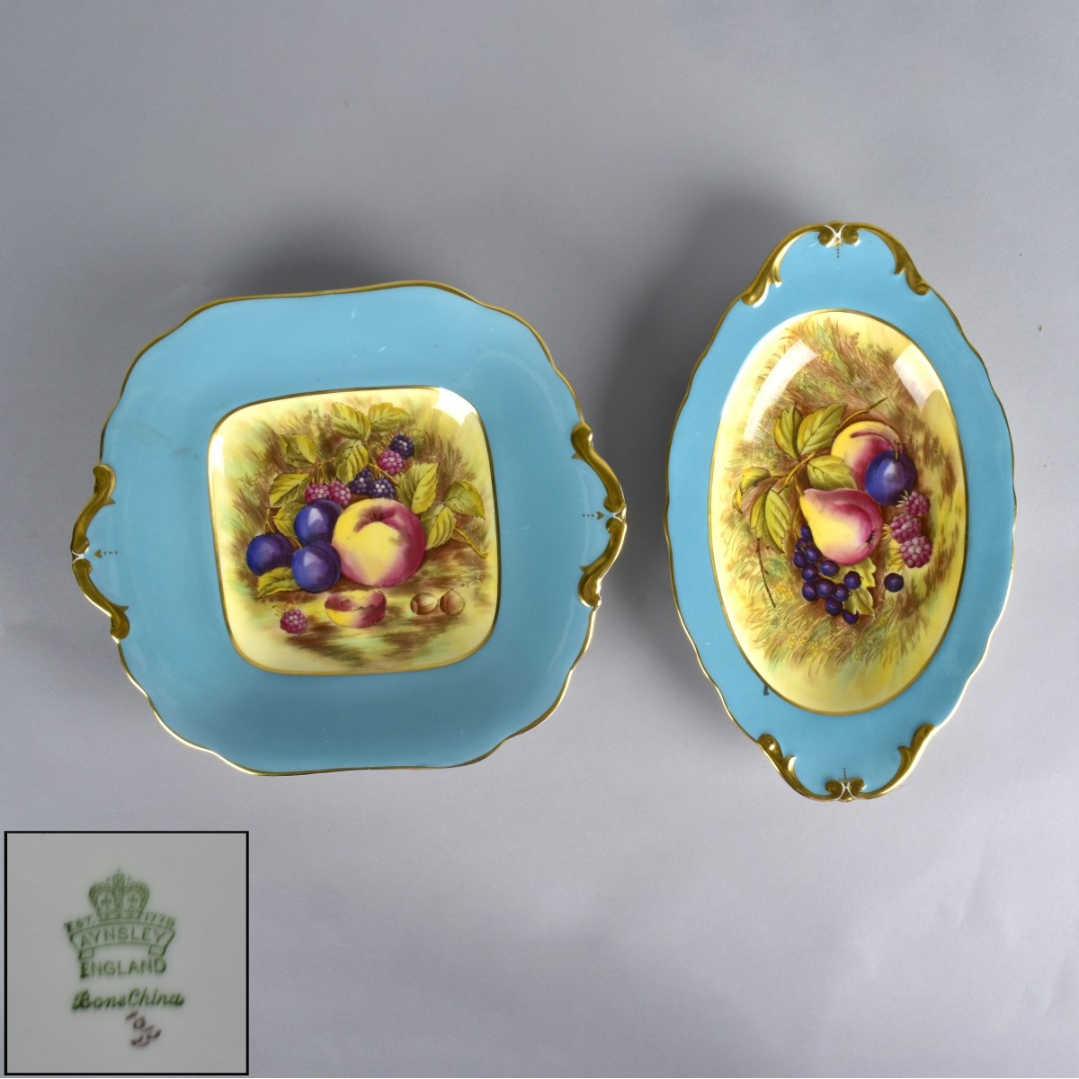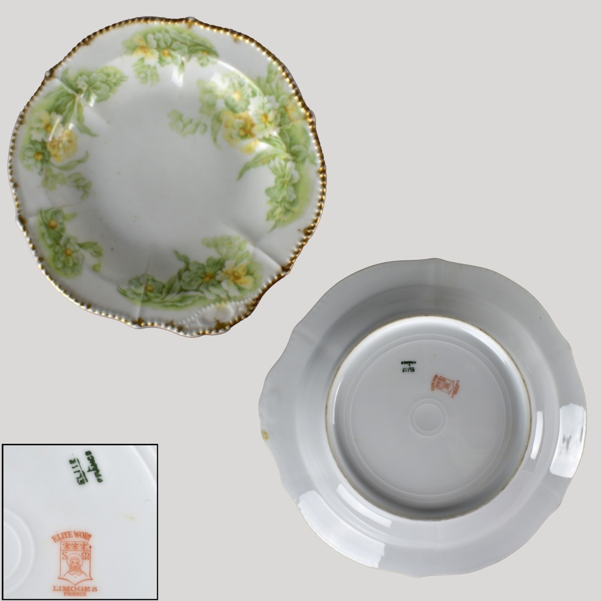 Grouping of Nineteen Assorted Porcelain Tableware. Includes a 3-piece Hutschenreuther tea set consisting of a teapot, creamer, and sugar; 2 Aynsley dishes, pair of figurines, and 12 Limoges bowls. Larger bowls measure 10" diam., teapot measures 9-1/2" x 9". Figurines measure 4" x 3-1/2". Condition: One larger bowl has a chip to the rim otherwise good condition. Estimate: $100.00 - $300.00 Domestic Shipping: Third party