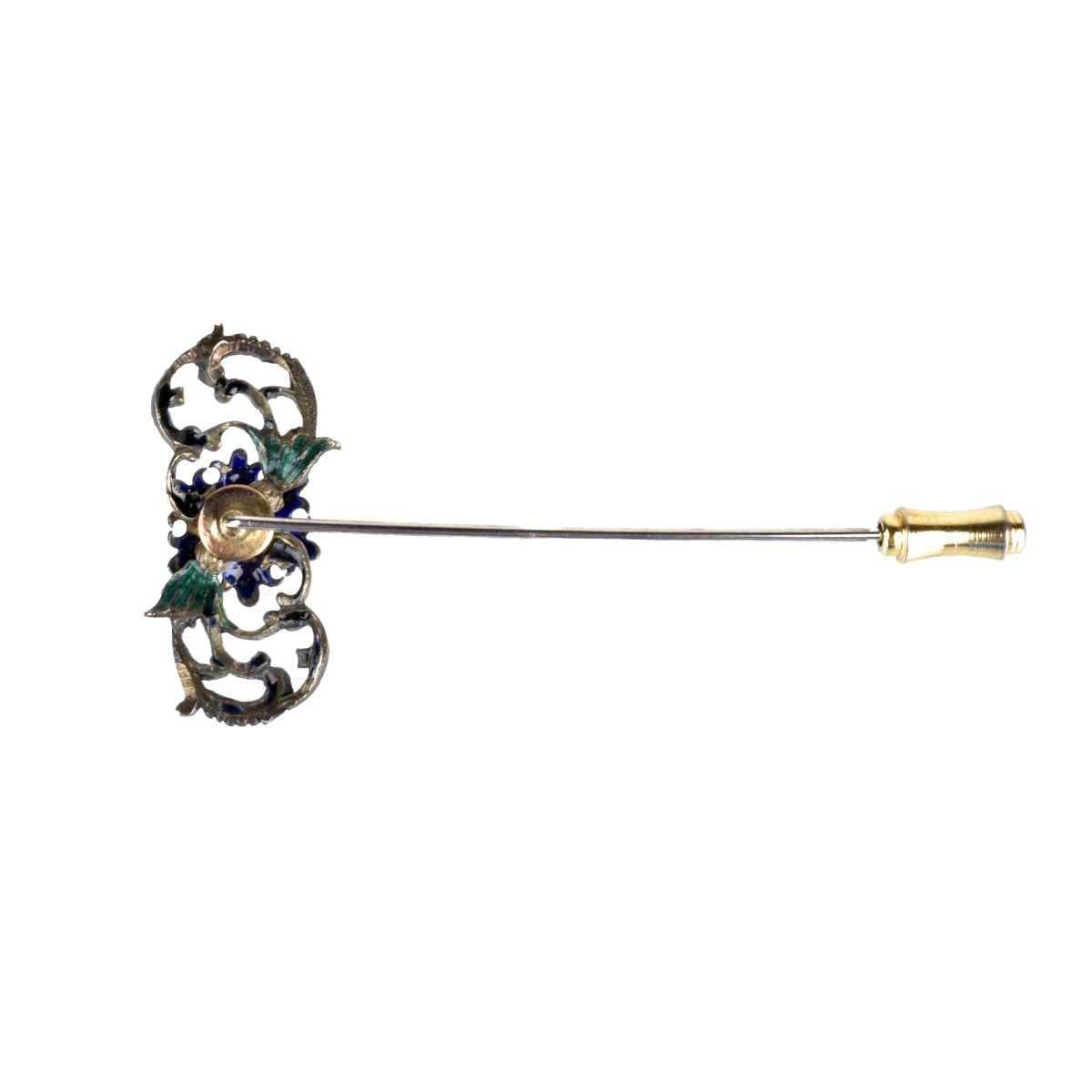 Gemstone, Enamel and Silver StickpinGemstone, Enamel and Silver StickpinGemstone, Enamel and Silver Stickpin