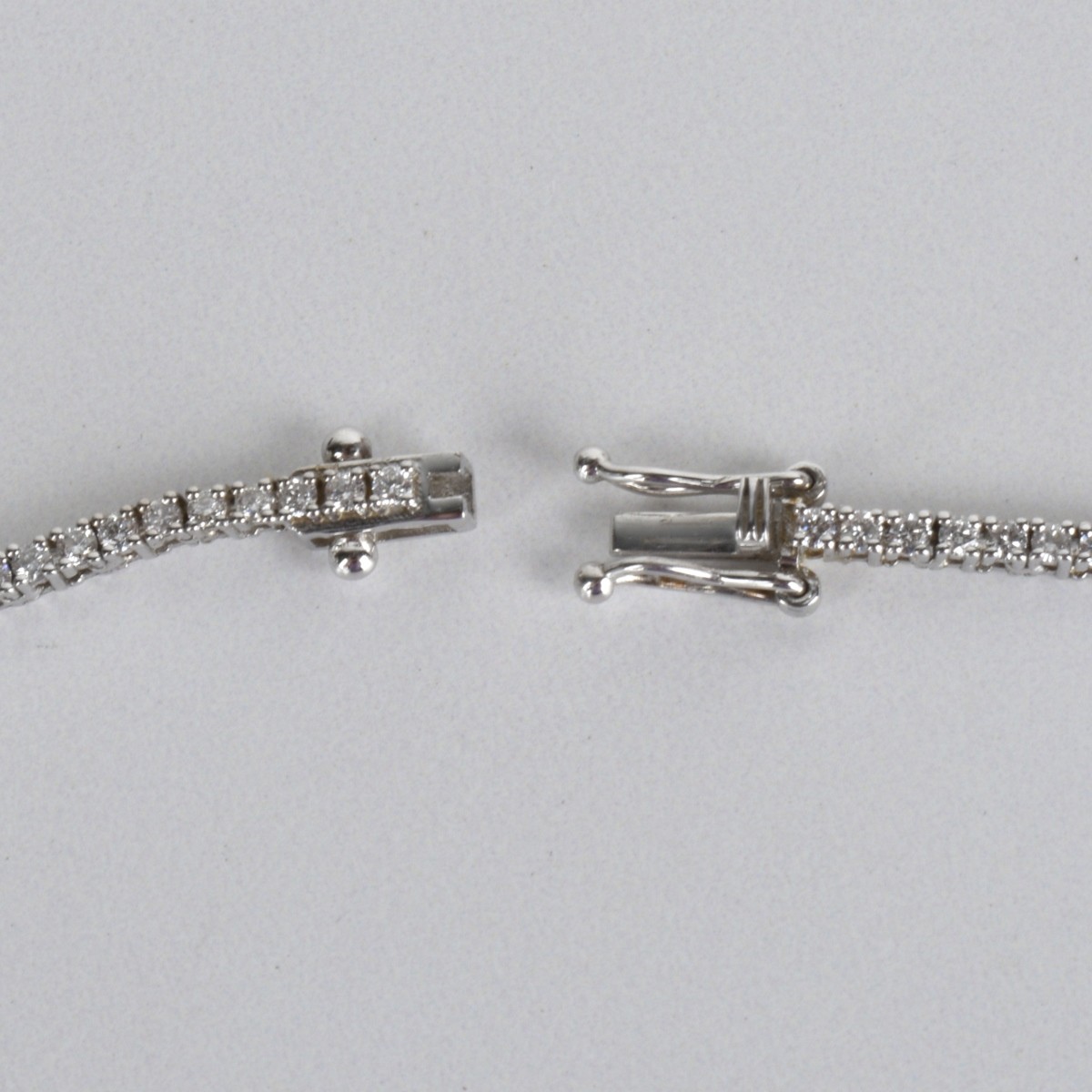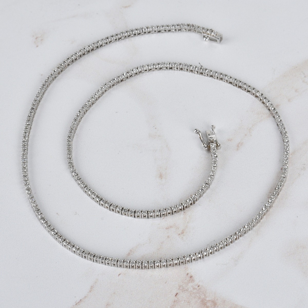 Approx. 3.75 Carat TW Round Brilliant Cut Diamond and 14 Karat White Gold Necklace. Diamonds G color, SI clarity. Measures 16-3/4" L. Approx. weight: 12.28 grams. Condition: New condition. For additional information and/or WhatsApp video please contact our resident GIA Graduate Gemologist, Russ Kodner at 954.650.5030 Estimate: $2500.00 - $3500.00 Domestic Shipping: $40.00