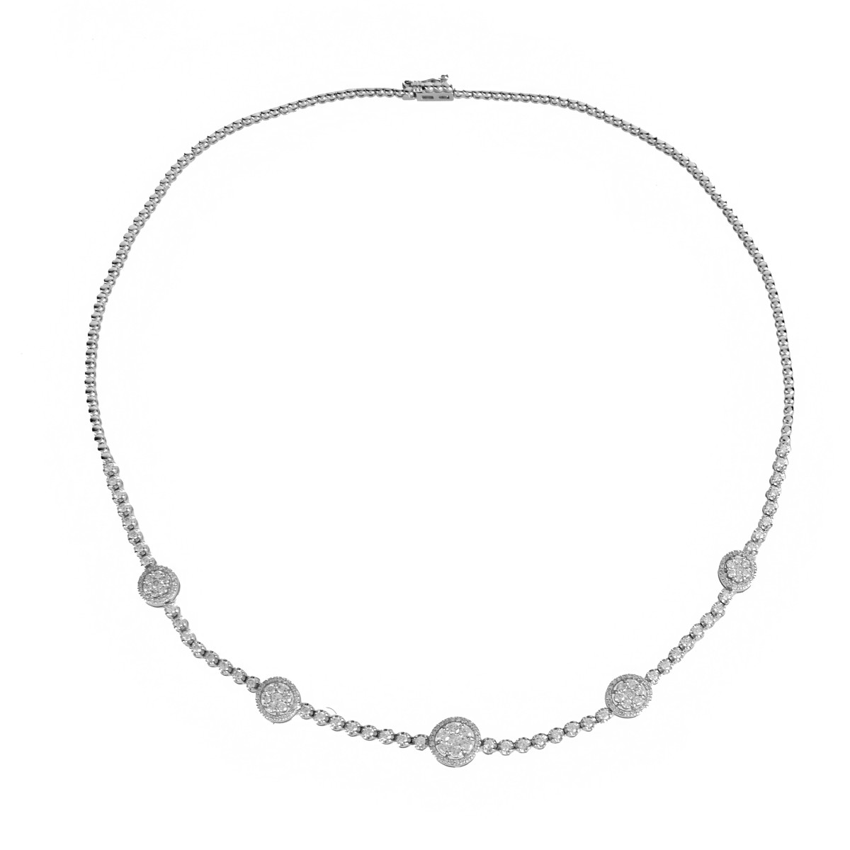 Approx. 2.75 Carat TW Round Brilliant Cut Diamond and 14 Karat White Gold Necklace. Diamonds G color, SI clarity. Measures 17-3/8" L. Approx. weight: 15.52 grams. Condition: New condition. For additional information and/or WhatsApp video please contact our resident GIA Graduate Gemologist, Russ Kodner at 954.650.5030 Estimate: $2200.00 - $2800.00 Domestic Shipping: $40.00