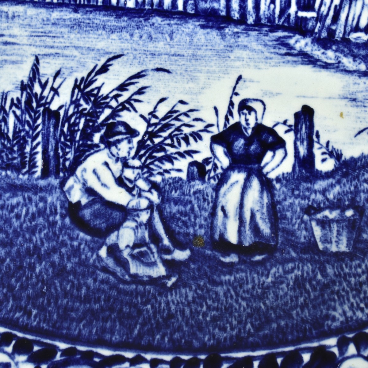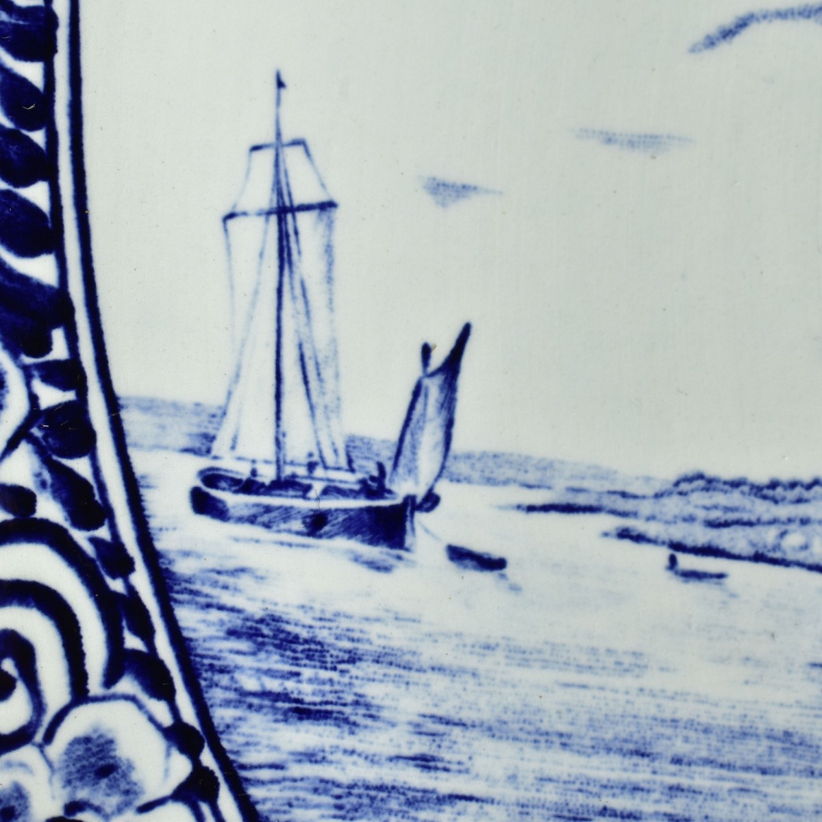 Grouping of Two Large Delft Blue and White Porcelain Chargers. One is marked Royal Sphinx Maastricht other is marked boch. One charger is artist signed Chattel. Each measuring 15-3/4" diam. Condition: Good condition. Estimate: $200.00 - $300.00 Domestic Shipping: Third party