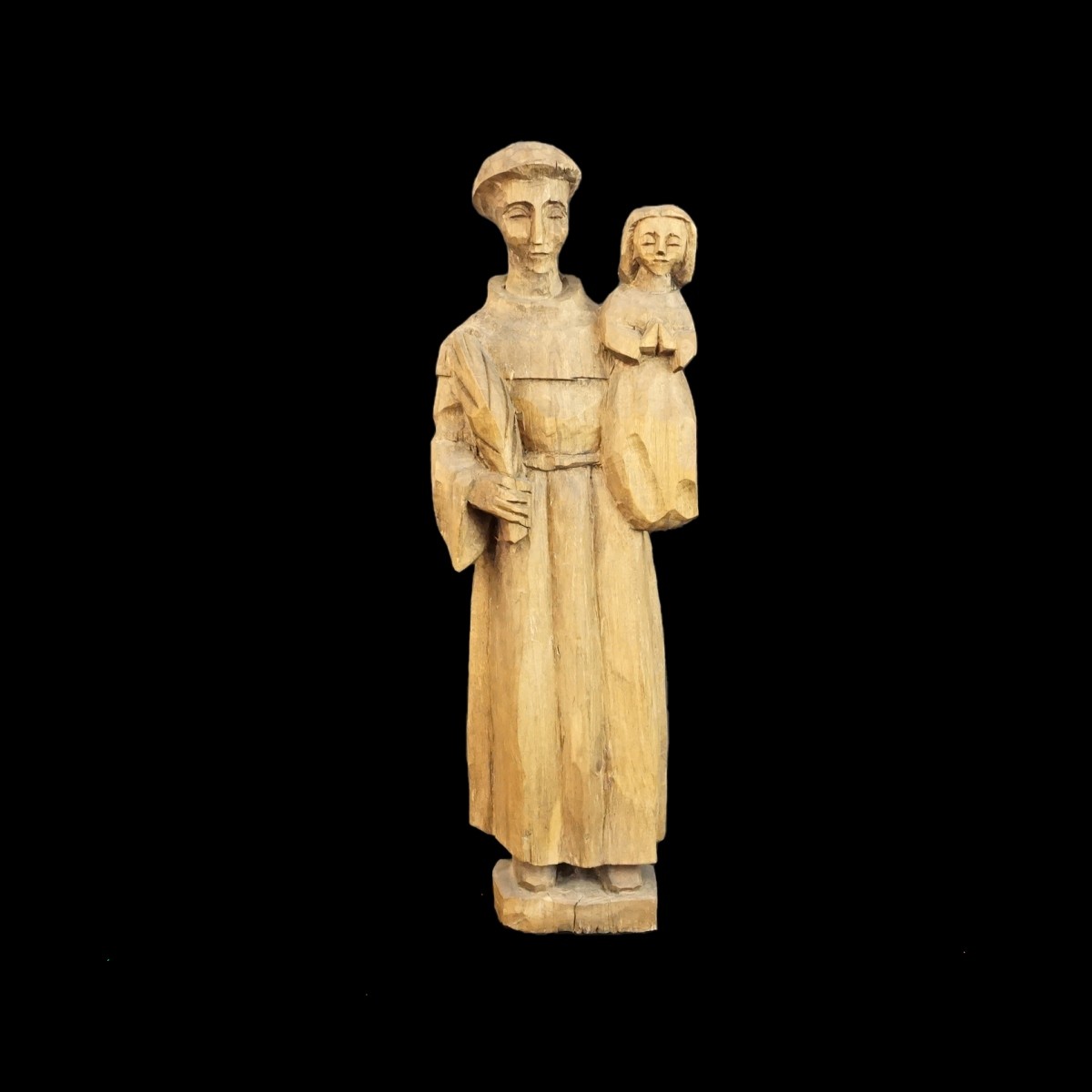 Large 20th Century Hand Carved Santos Figurine with Child. Overall measures 19-1/2" x 6-1/4" x 3". Condition: Good condition. Estimate: $40.00 - $300.00 Domestic Shipping: Third party
