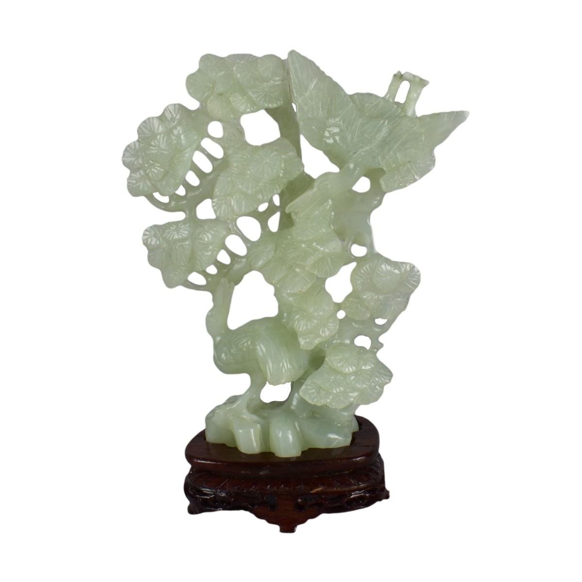 Antique Chinese Carved Jade Group of Cranes Presented on a Wooden Stand. Carving measures 8" x 7". Condition: One bird has some minor losses to one foot. Estimate: $150.00 - $250.00 Domestic Shipping: $62.00