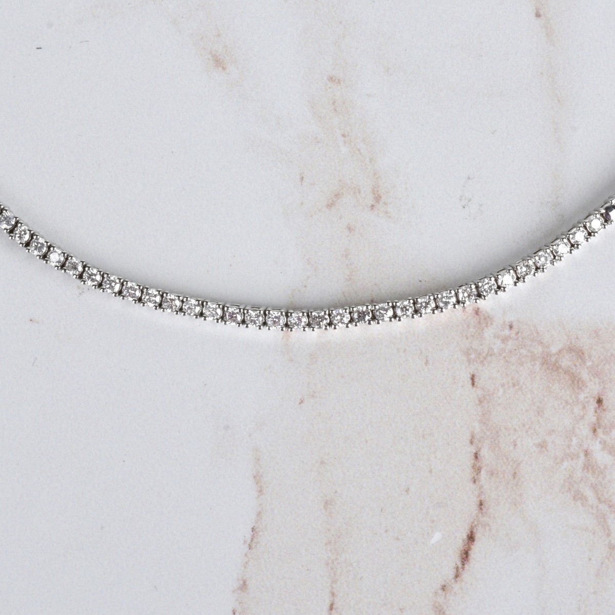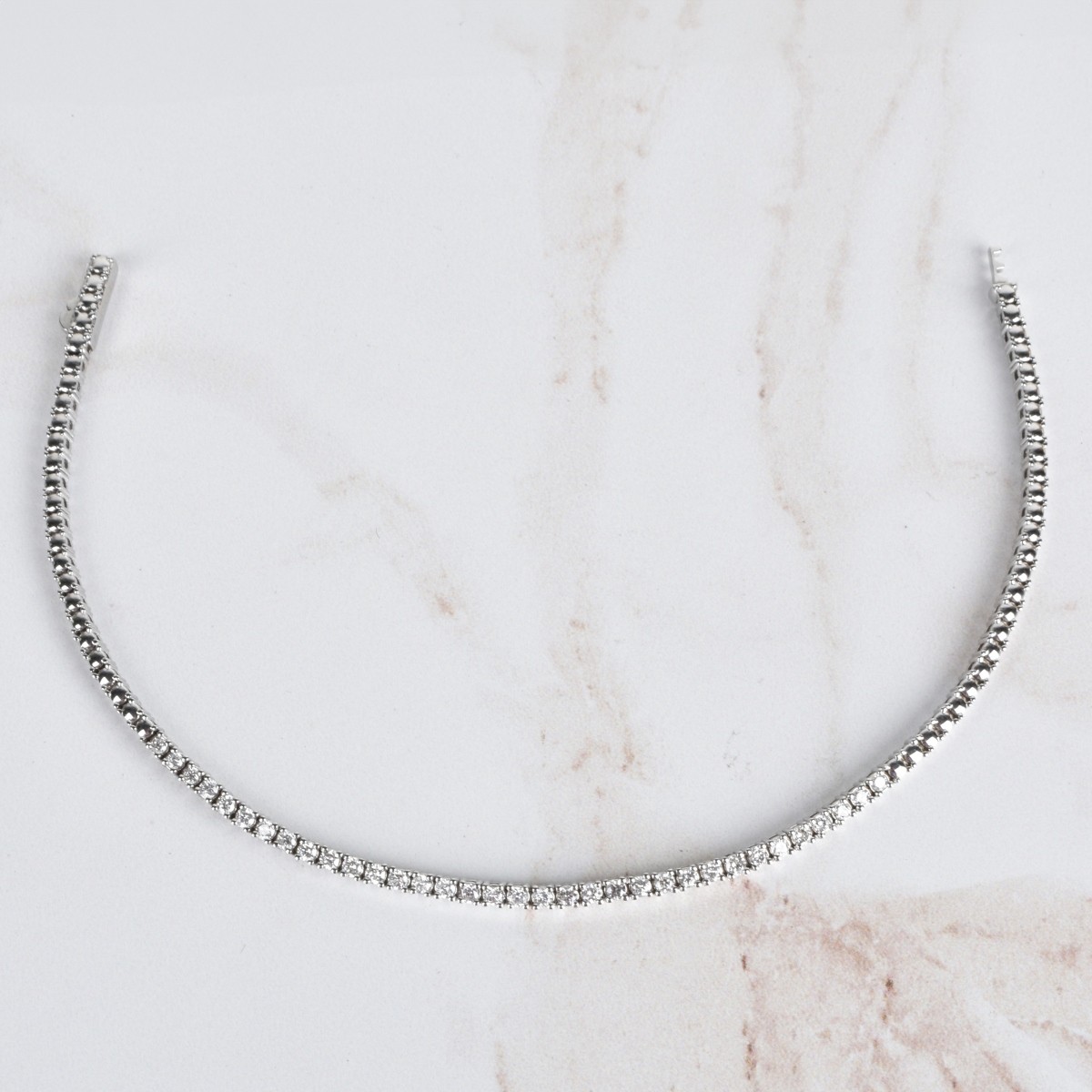 Approx. .90 Carat TW Round Brilliant Cut Diamond and 14 Karat White Gold Line Bracelet. Diamonds G color, SI clarity. Measures 7-1/4" L. Approx. weight: 6.08 grams. Condition: New condition. For additional information and/or WhatsApp video please contact our resident GIA Graduate Gemologist, Russ Kodner at 954.650.5030 Estimate: $800.00 - $1200.00 Domestic Shipping: $40.00