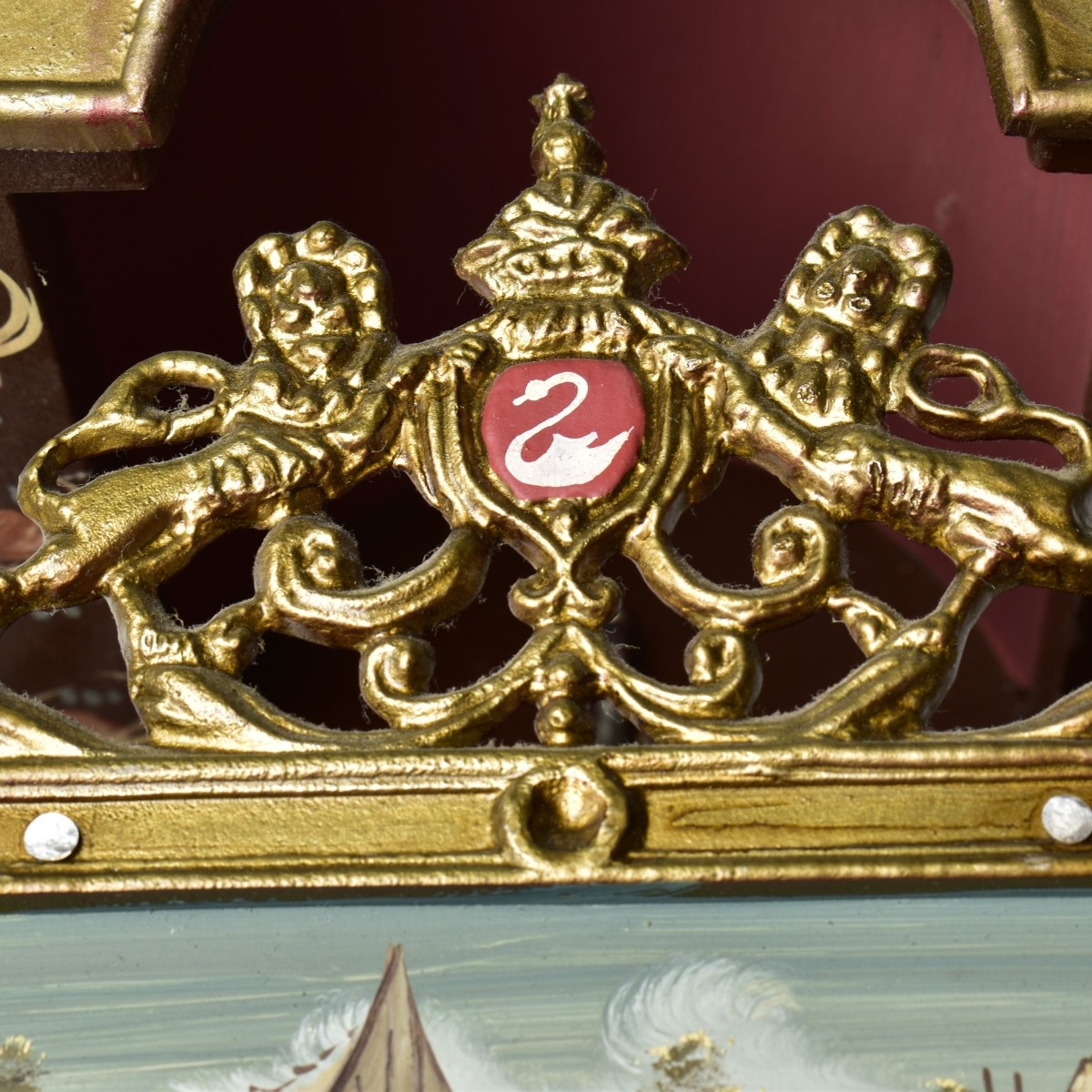 Vintage Kiga Holland Neoclassical Style Hand Painted Wall Clock in Wooden Case. Pendulum and weights to accompany the lot. Measures 21" x 11-1/2" x 6-1/2". The gallery does not warranty the running condition of clocks. Condition: Working. Estimate: $100.00 - $300.00 Domestic Shipping: Third party