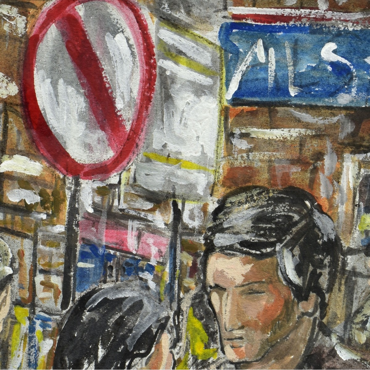 Olave (Unknown Artist) Gouache on Paper "Street Scene with Abstract Figures" Signed Lower Left. Sight measures 14-1/8" x 11". Frame measures 18-3/4" x 15-1/2". Condition: Good condition. Estimate: $200.00 - $400.00 Domestic Shipping: $88.00