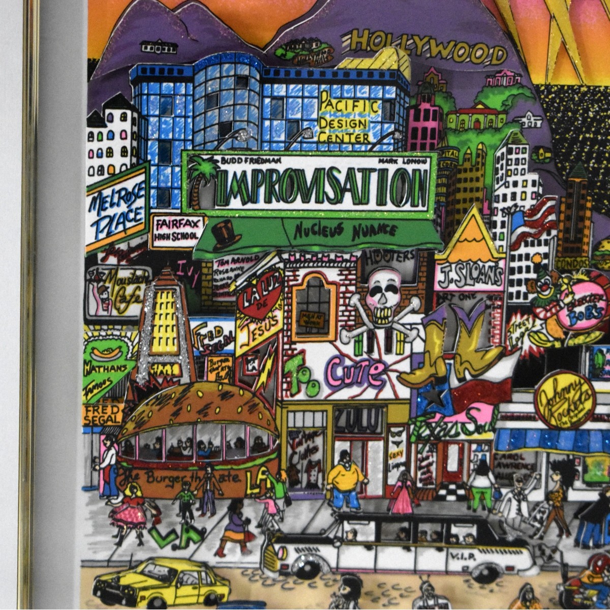 Charles Fazzino, American (Born 1955) 3-D Serigraph in Colors "Melrose 90201" Signed and Numbered 140/475. Measures 9-1/4" x 12-3/4". Frame measures 19" x 22-1/4". Condition: Good condition. Estimate: $800.00 - $1200.00 Domestic Shipping: $125.00