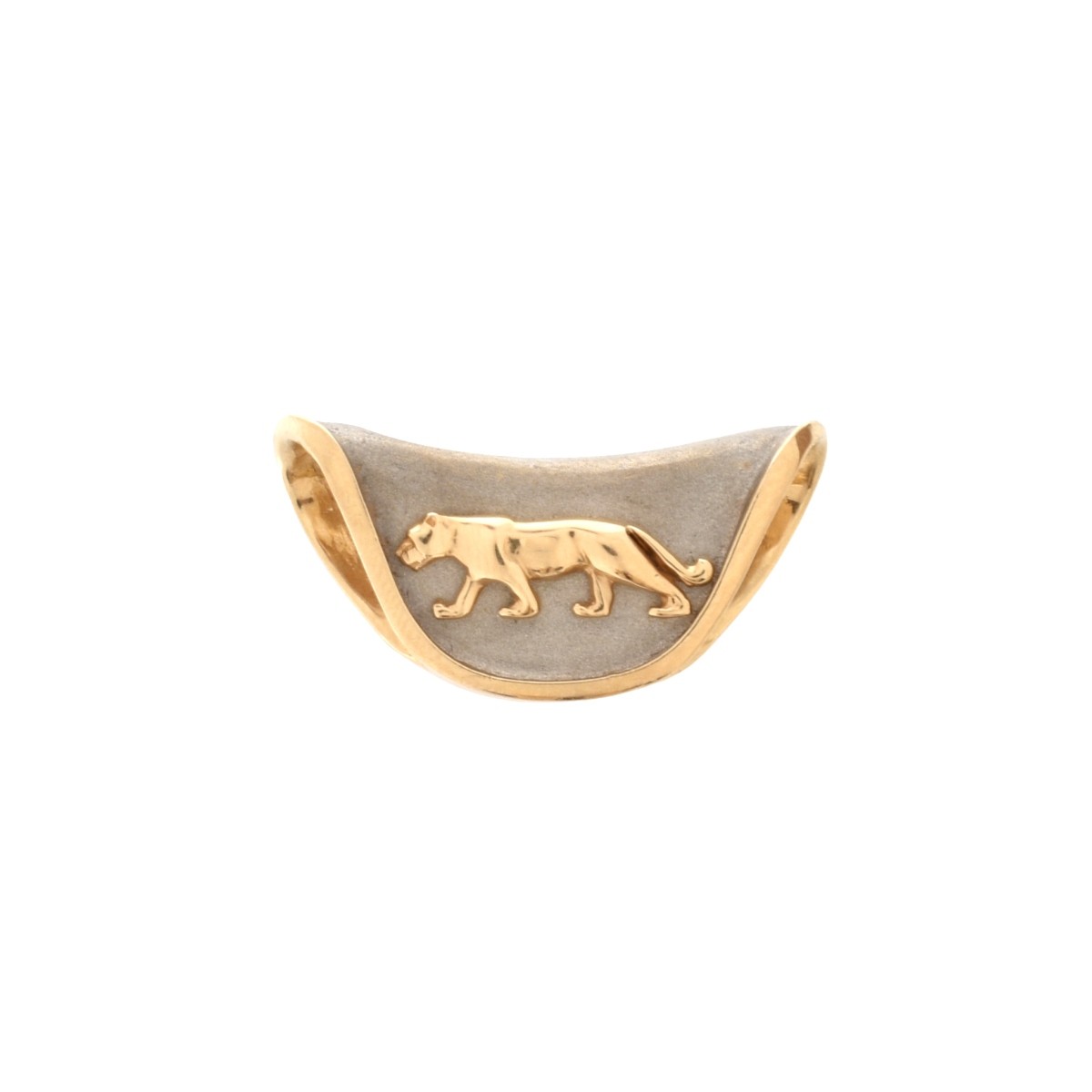 Vintage Cartier style 14 Karat Yellow and White Gold Panther Link Necklace, Slide Pendant and Huggie Earrings Suite. Earrings and pendant stamped 14K. Necklace measures 18"L, 3/8" W; pendant measures 1-1/4" W, 9/16" H; earrings measure 1-1/8" x 3/8". Approx. total weight: 66.76 grams. Condition: Very good vintage condition. For additional information and/or WhatsApp video please contact our resident GIA Graduate Gemologist, Russ Kodner at 954.650.5030 Estimate: $3000.00 - $5000.00 Domestic Shipping: $40.00