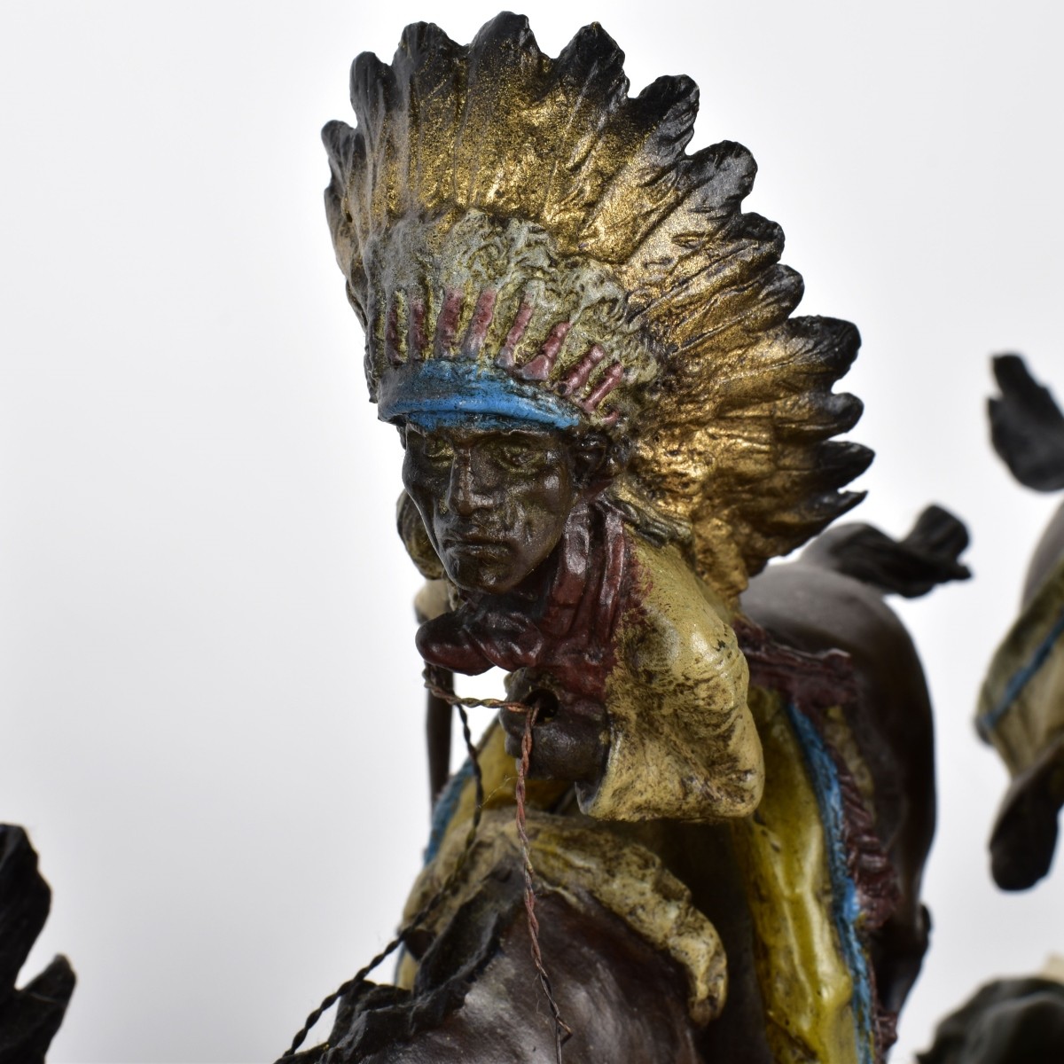 After: Carl Kauba, Austrian (1865 - 1922) Patinated Bronze Sculpture on Marble Base "War Path" Signed. Overall measures 11-1/2" x 28" x 7". Condition: Good condition. Estimate: $250.00 - $500.00 Domestic Shipping: Third party