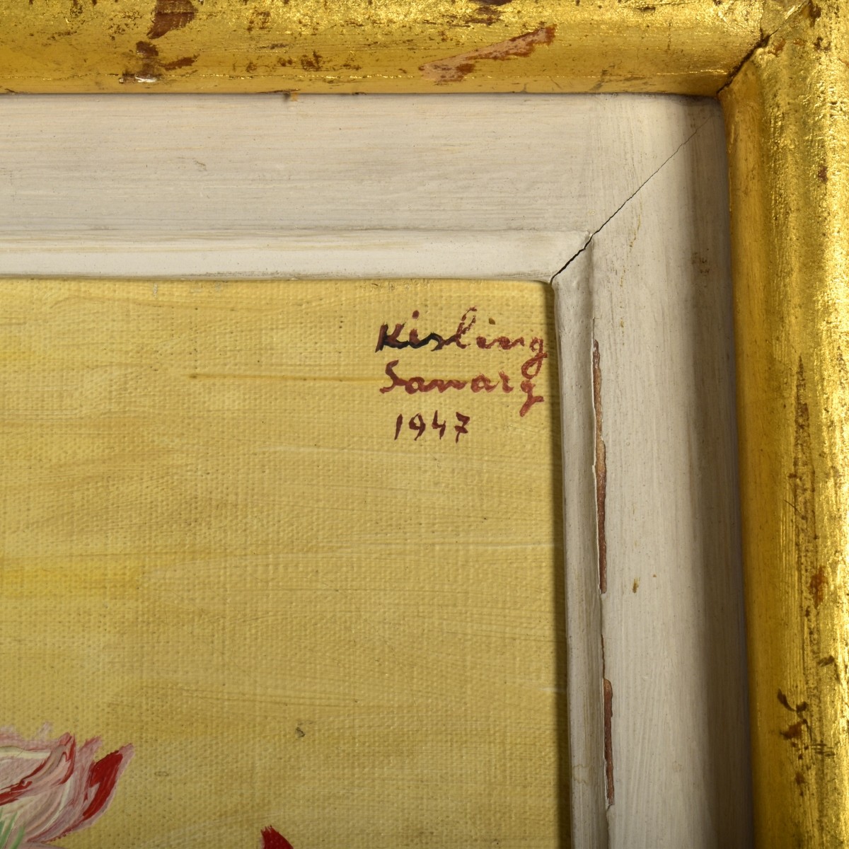 Moise Kisling, French/Polish (1891-1953), Oil on Canvas, Still Life with Flowers. Signed upper right, inscribed Samarq 1947. Measures 16-3/8" H, 10-5/8" W; frame measures 24-1/2" H, 19" W. Condition: Very good original condition. Wear to frame. Estimate: $20,000.00 - $30,000.00 Domestic Shipping: $165.00