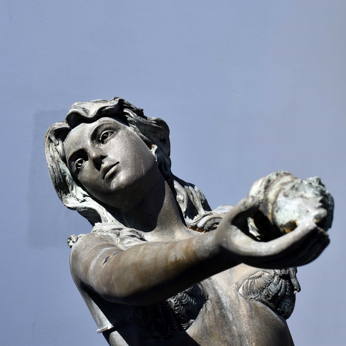 Palace Size Garden or Entry Bronze Sculpture of a Leaping Dolphins Presented as a Fountain. Unsigned. Overall measures 94" x 35" x 42". Condition: Oxidation, fading to the surface. Estimate: $1000.00 - $5000.00 Domestic Shipping: Third party