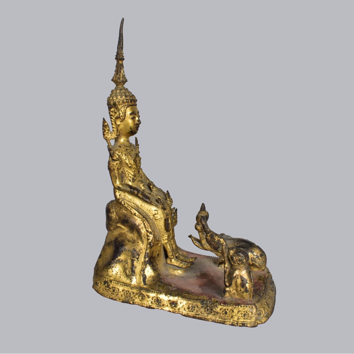Antique (Rattanakosin Kingdom) Thai Concrete Filled Gilt Bronze Phra Pang Reerai Buddha Sculpture. Measures 7-1/2" x 3" x 5-1/8". Condition: Rubbing to the surface otherwise good condition. Estimate: $200.00 - $1000.00 Domestic Shipping: $58.00