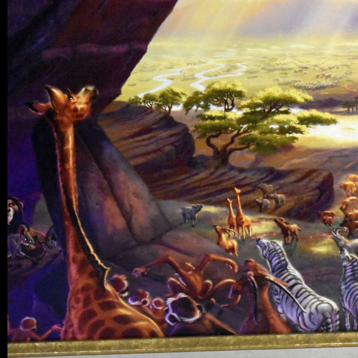 Thomas Kinkade, American (1958 - 2012) Giclee on Canvas "Lion King" Signed and Numbered 14/495. Measures 24" x 36". Frame measures 34-1/2" x 46-1/2". Condition: Good condition. Estimate: $200.00 - $400.00 Domestic Shipping: Third party