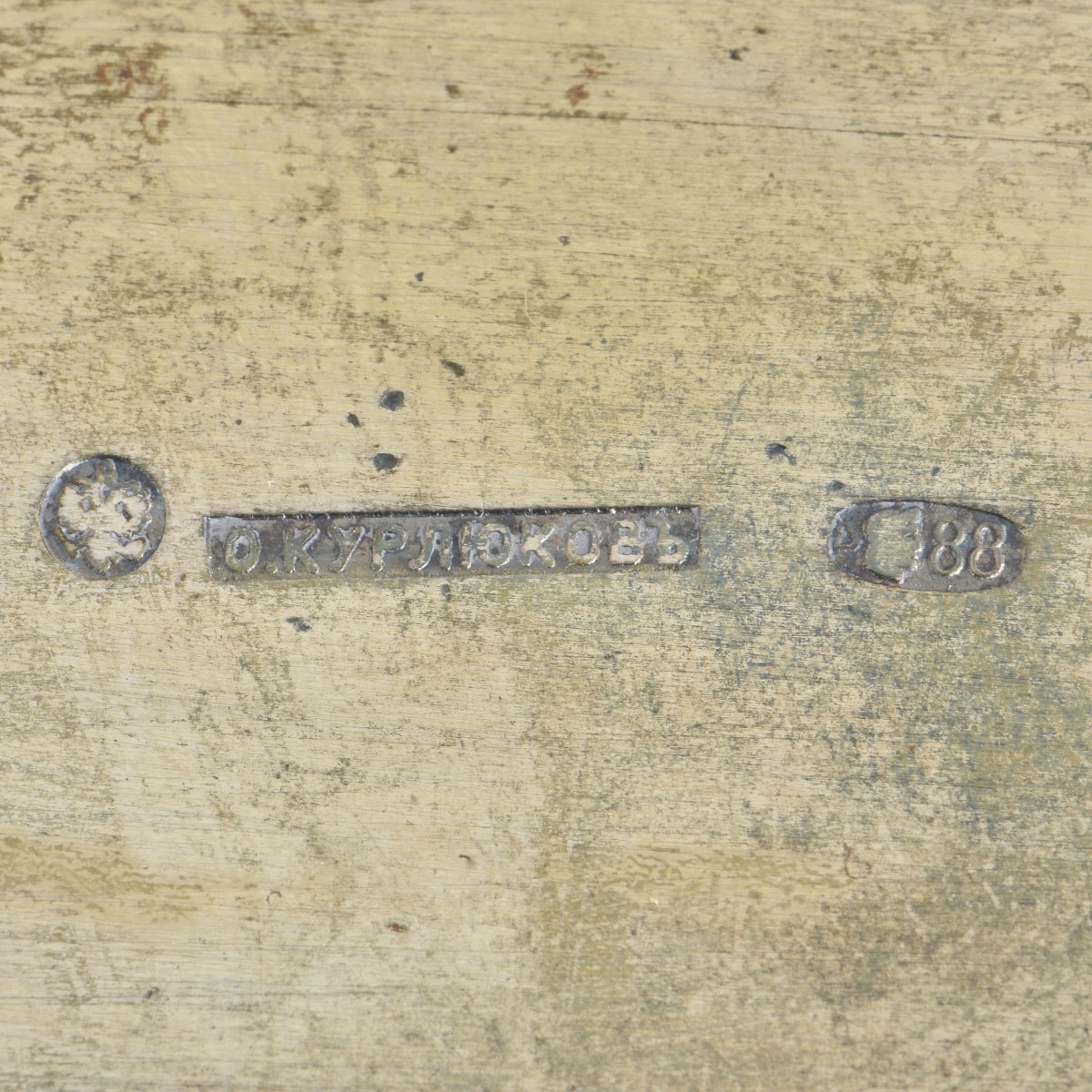 Very Fine Russian Cloisonne Enamel Silver Gilt Long Box. Rectangular hinged box raised on paw feet. Polychrome enamel stylized floral design accented with cabochon amethysts and chrysoprase. Maker's mark for Orest Fedorowitsch Kurljukow, 88 silver standard mark with Kokoshnik. Measures 10-3/4" L, 4-1/8" W, 2" H. Approx. weight: 787.05 grams. Provenance: Purchased circa 2002 at Gallery 24 Antques, New York, NY. Condition: Very good condition. Estimate: $3000.00 - $4000.00 Domestic Shipping: $75.00